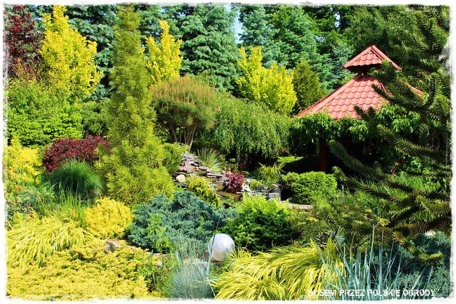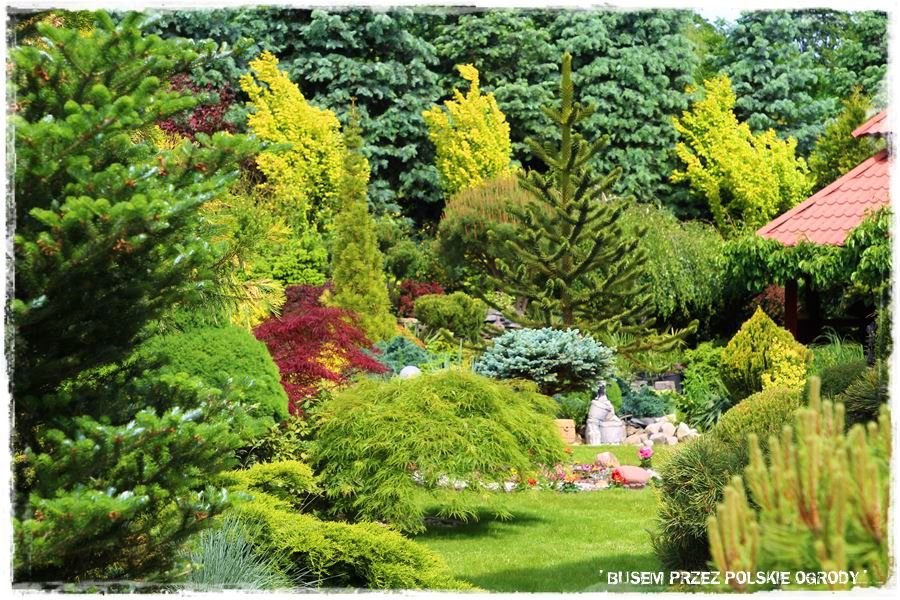 Trzon nasadzeń stanowią rośliny iglaste, co jak widziałeś w relacji zimowej z roku 2019 sprawia, że ogród jest atrakcyjny przez cały rok. To kolejna, wielka zasługa Właścicieli.