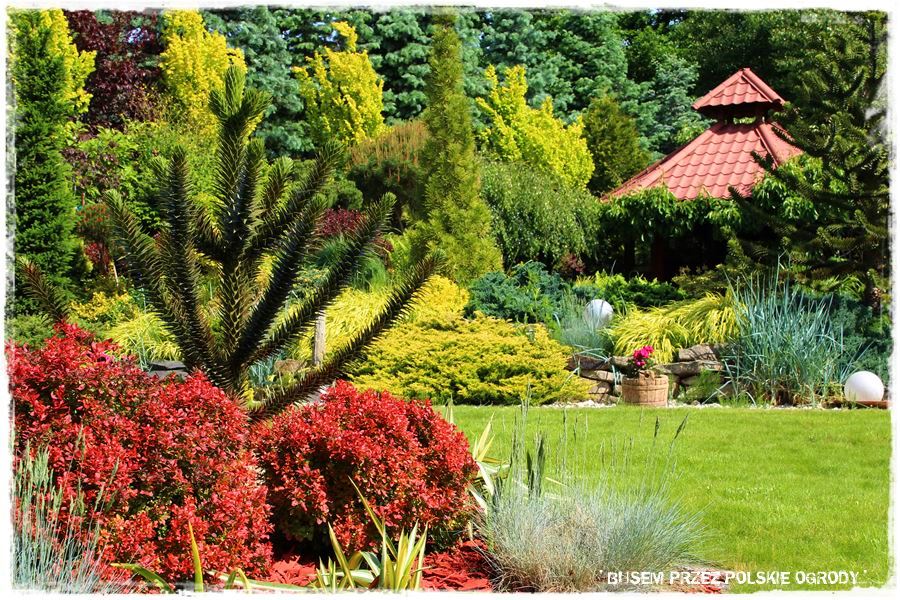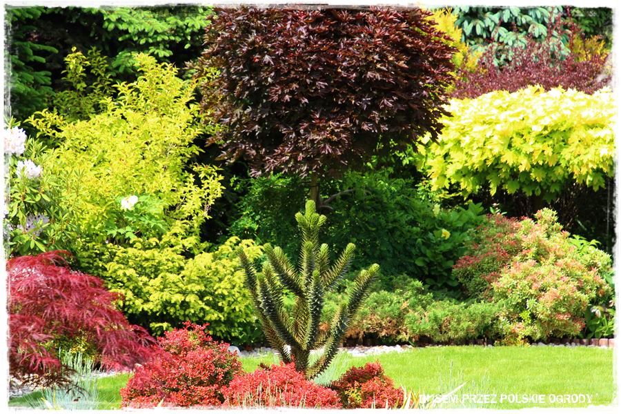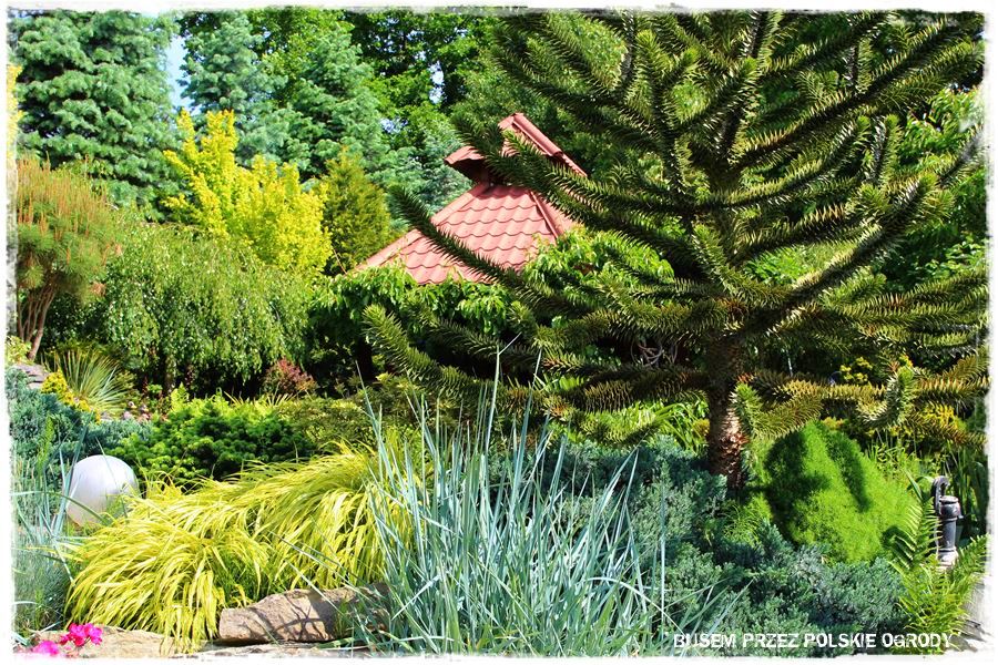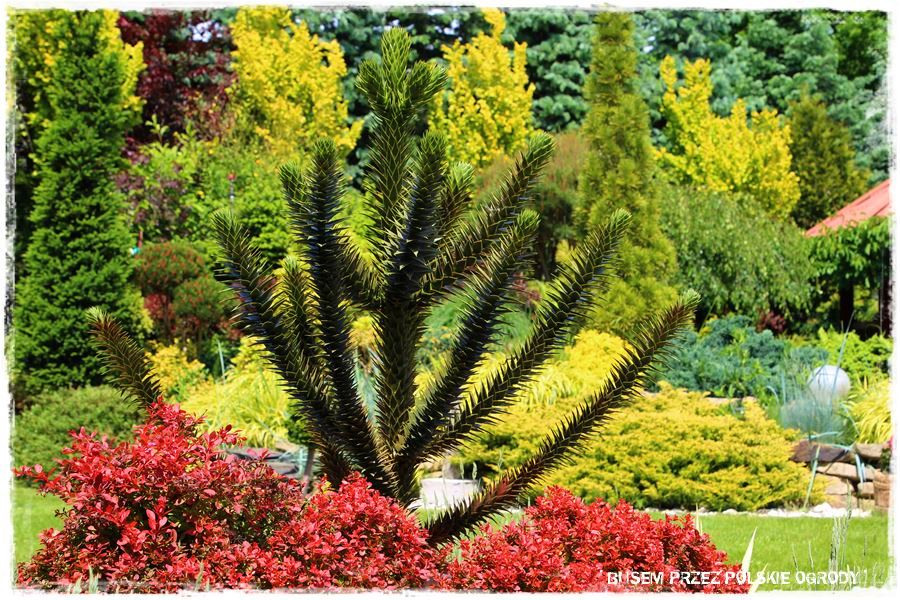 W dużym zakresie warto stawiać na gatunki ‘sprawdzone’, innymi słowy pospolite, które w uprawie nie sprawiają szczególnych trudności, a poza tym dobrze radzą sobie w naszym klimacie. Gwarantuje to, że z ogrodu ‘nie wypadają’ co chwile poszczególne egzemplarze, którym zaszkodził mróz, susza, deszcz, czy taka lub inna choroba. Ale jak widzisz od reguły są wyjątki, bo araukarie radzą tu sobie wyśmienicie.
