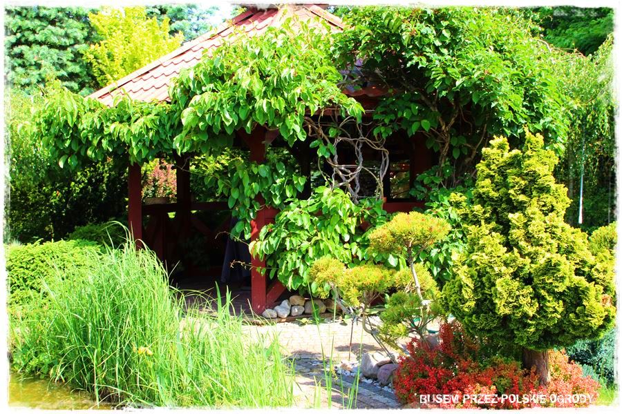 Jednak absolutny numer jeden to wspominany kącik oczkowo – altanowy, który tak naprawdę zajmuje dobre 150 – 200 metrów kwadratowych. Pięknie skomponowana i zestopniowana przestrzeń, w której połączenie wody i altany sprawdza się wyśmienicie. Możesz mi wierzyć, że wypoczynek w tym miejscu robi się sam, wystarczy tam po prostu tylko być.