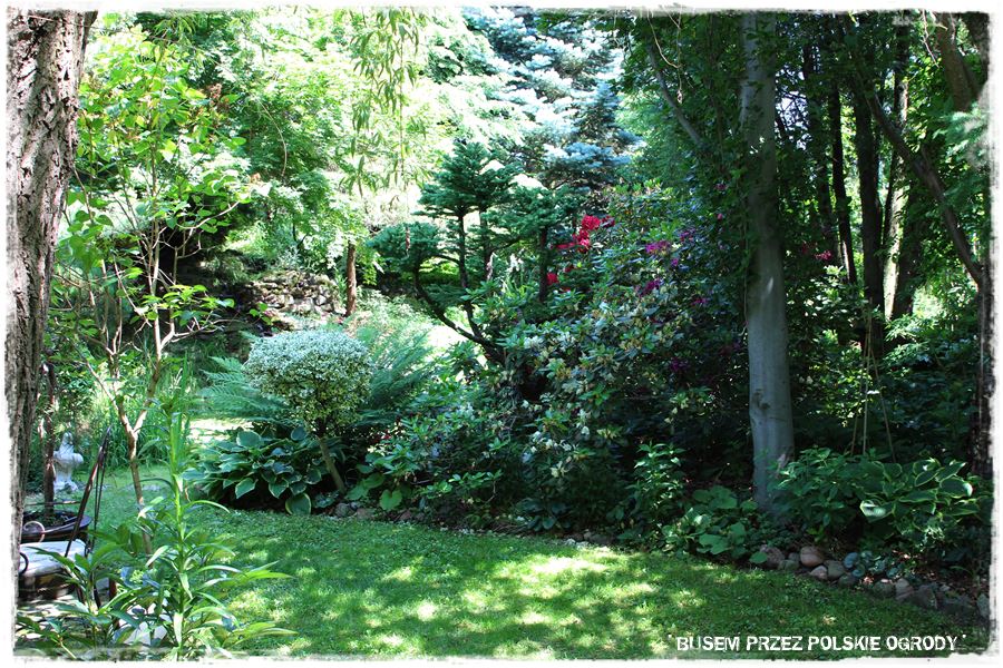 Jak pewnie już wiesz z wcześniejszych relacji, każdy z odwiedzonych ogrodów staram się na wstępie jakoś nazwać i zatytułować. Tak, aby na początku nastawić Cię na to, czego możesz się po nim spodziewać. Innymi słowy, staram się znaleźć jakąś główną cechę i wyróżnik danego miejsca, który zdecydowanie odróżnia go od pozostałych. I tak jest również w tym przypadku. A o skojarzenia w tym miejscu jest łatwo, dlatego że to miejsce, które nawet bez głębszego zastanowienia, można nazwać małym arboretum. I nie ma w tym ani grama przesady. Dlatego, że na mniej więcej pół hektarowym obszarze, rosną tysiące roślin, w co najmniej setkach gatunków i odmian. A pewnie również w tysiącach. Do tego wszystkiego miejsce to bardziej przypomina park, a nawet jakąś puszczę, niż typowy, prywatny ogród.