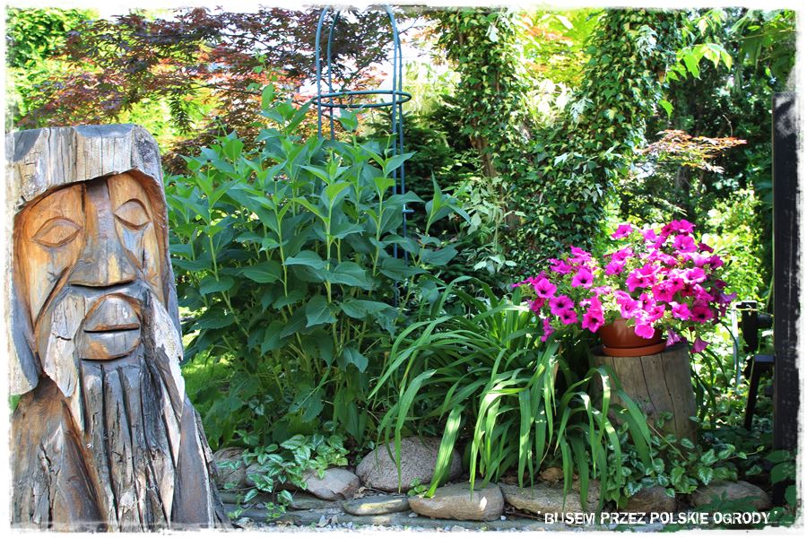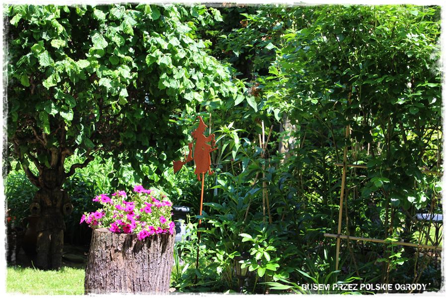 Moją uwagę przykuły również liczne i oryginalne donice, których rolę, jak się okazuje, mogą pełnić nawet stare pnie.