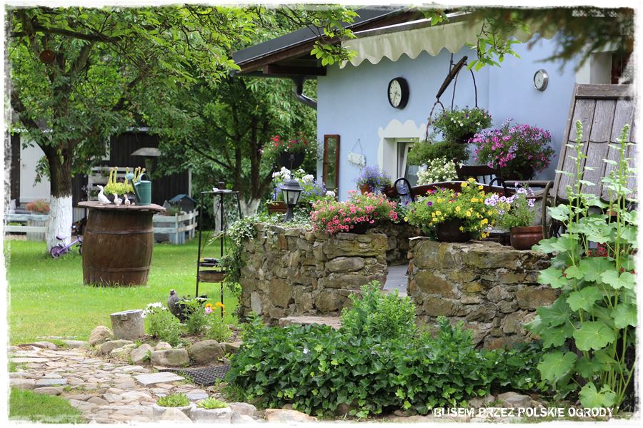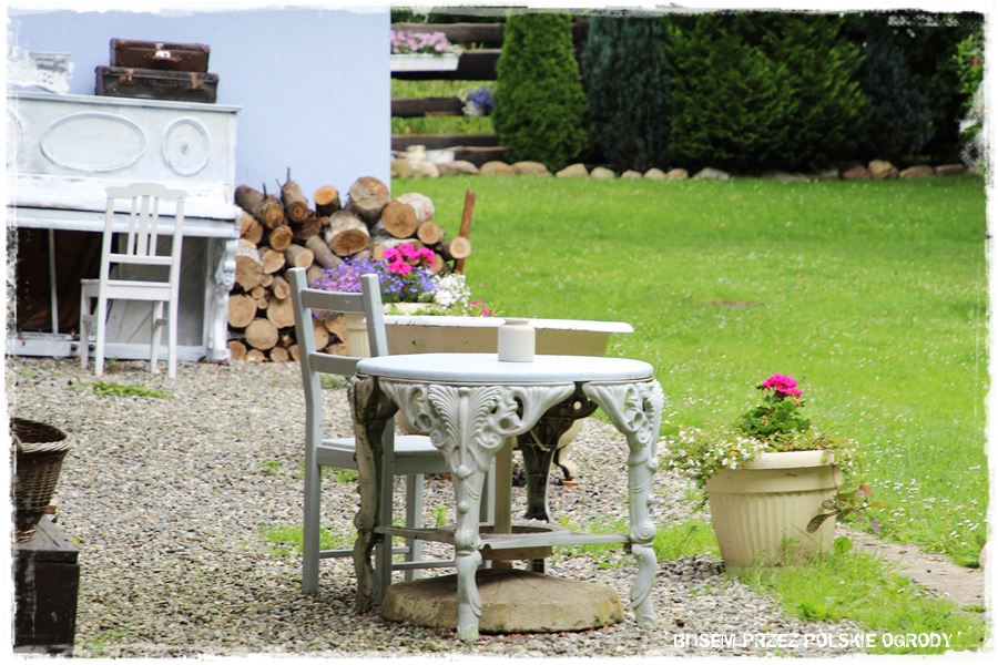 Aranżując ogród warto również być konsekwentnym i trzymać się obranego kierunku. Tak jak w tym przypadku, gdzie powstał typowy ogród wiejski, naturalny, swobodny, gdzie można spotkać liczne stare elementy, wszystko jest luźne, niedopasowane, a zarazem pięknie tworzy całość,