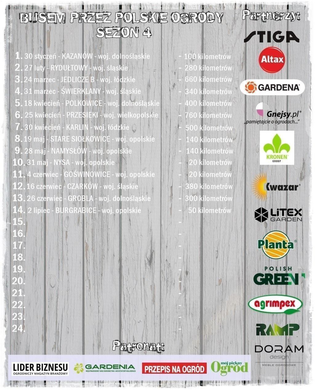 ciemnozielone kropki z numerami od 1 do 24, które obrazują wszystkie ogrody odwiedzone w sezonie 1 – 2018