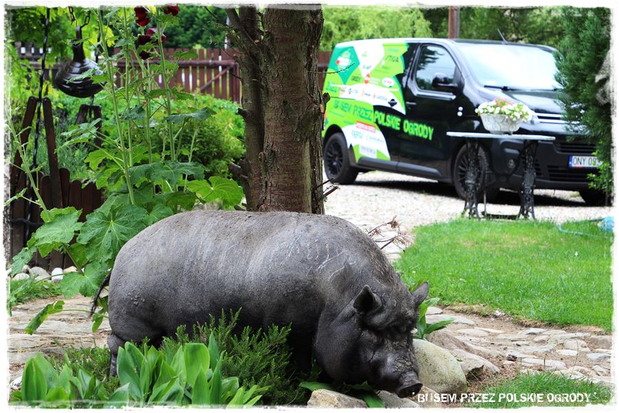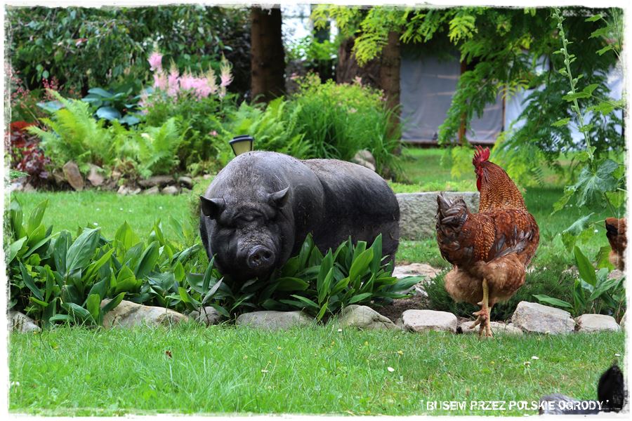 A na koniec najważniejsze. Ten ogród to miejsce wyjątkowo przychylne naturze. Zarówno tej roślinnej, ale także ogólnie mówiąc zwierzęcej. Bo luźno chodzą tam nie tylko psy i koty, ale także kury, a nawet świnie, które od razu powiem, są niezwykle sympatyczne i towarzyskie i do tego są naprawdę wyjątkową ozdobą.