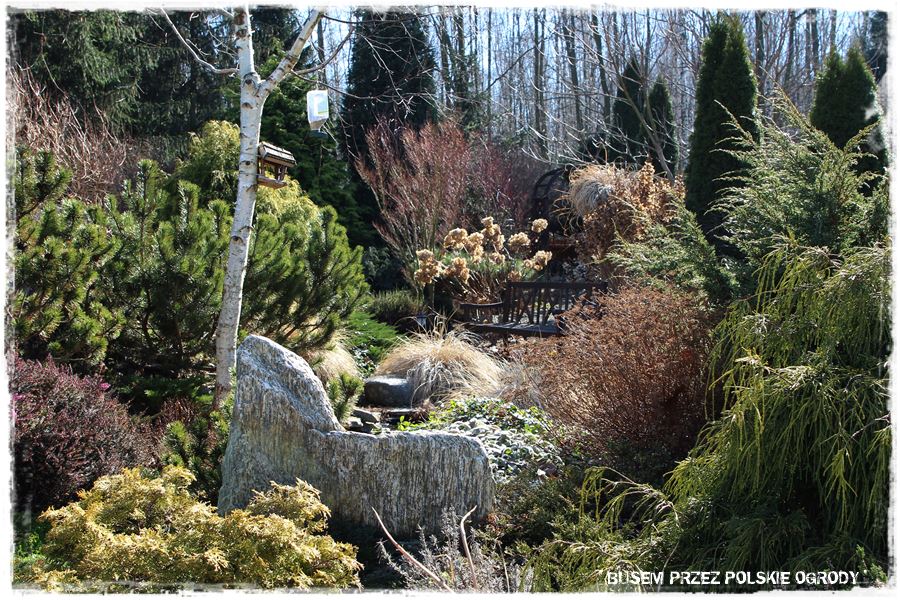 Wracając do samego ogrodu i tego, co się w nim zmieniło. Na początek sprawa najważniejsza, na którą chciałbym abyś zwrócił uwagę. To zimozieloność tego ogrodu, o której już wspomniałem. Wynika ona przede wszystkim z tego, że szkielet ogrodu stanowią wyjątkowo dobrze dobrane i skomponowane rośliny iglaste.