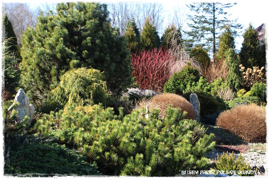 Przede wszystkim chyba przekonanie, że dobierając rośliny do ogrodu warto zrobić to tak, aby zdobiły ogród przez okrągłe 12, a nie tylko 6 czy 7 miesięcy. Aby to osiągnąć, w głównej mierze trzeba postawić na rośliny iglaste, które powinny stworzyć główny szkielet ogrodu. Wszystkie inne rośliny, w szczególności liściaste, kwitnące itd. powinny być uzupełnieniem iglastych, umiejętnie wkomponowanym pomiędzy nie. Takie podejście gwarantuje to, że nawet w okresie bezlistnym, ogród nie jest pusty, bo ‘wypadają’ z niego jedynie niektóre pozycje, ale odpowiednio wkomponowane pomiędzy rośliny, które swojego uroku nie tracą. Stąd ogród nie pustoszeje, nie wygląda na ‘martwy’ czy niezagospodarowany.