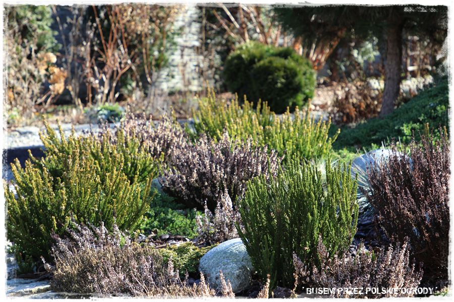 Przy okazji zwróć uwagę na wrzosy, które również wyjątkowo zdobią ogród o tej porze roku. Przypominam, w końcówce lutego.