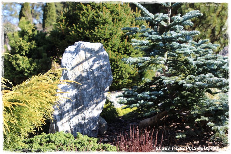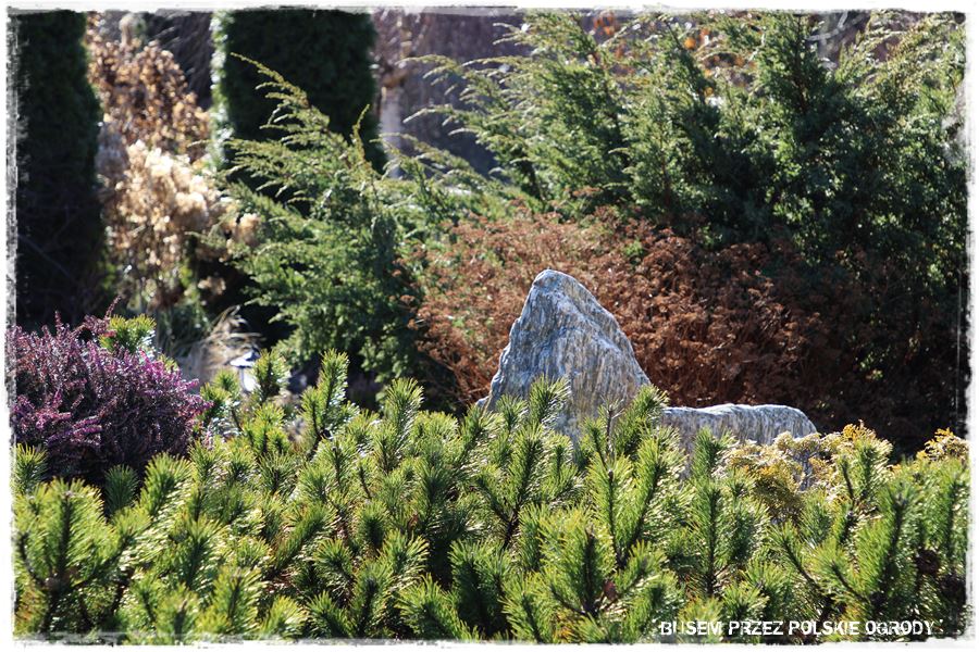 Dużą ozdobą są również ciekawie wkomponowane głazy i szpilki gnejsowe, które wystają z zieleni niczym górskie szczyty.