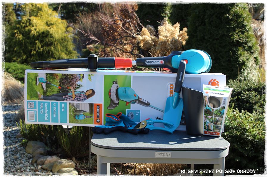akumulatorowe urządzenie wielofunkcyjne od marki Stiga, zestaw sekatorów od Marki Gardena, zestaw drobnych narzędzi od marki Ramp. Wszystko idealne do wczesnowiosennych przycinek i prac w ogrodzie