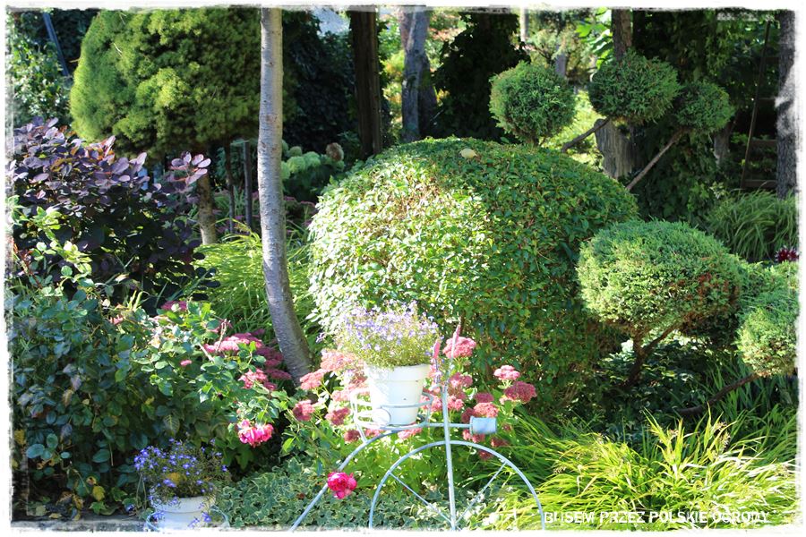 Warto ogrody ozdabiać. Do roślin dodawać inne elementy, ciekawie je komponując, sprawiając jednocześnie, że całość jest ciekawsza w odbiorze. Tak jak w tym ogrodzie gdzie ciekawie wyglądają np. liczne ozdoby,