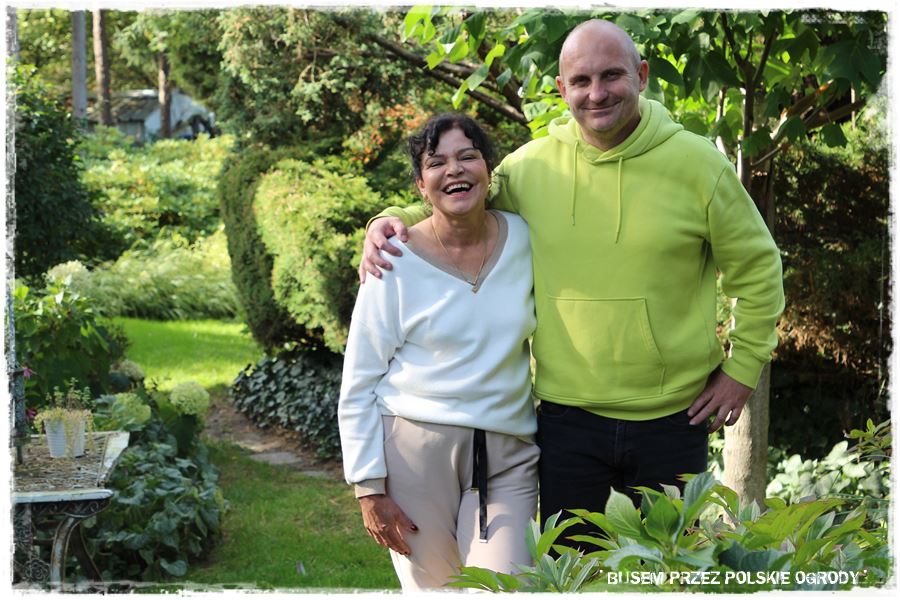 Wracając do wizyty, jak zawsze, bus zaparkował w ogrodzie, a ja miałem możliwość przywitać się z Gospodynią tego terenu – Ireną. Co więcej, niezwykle otwartą i wesołą Kobietą.
