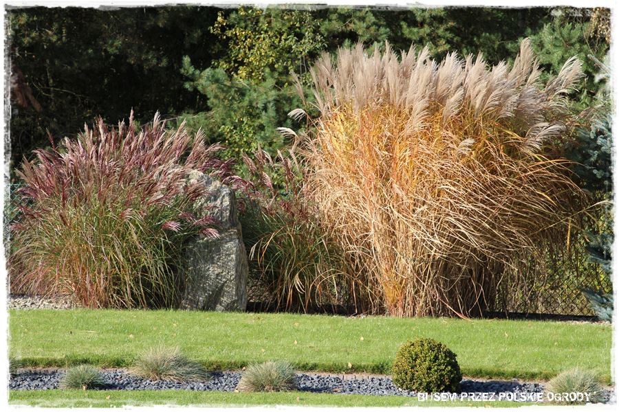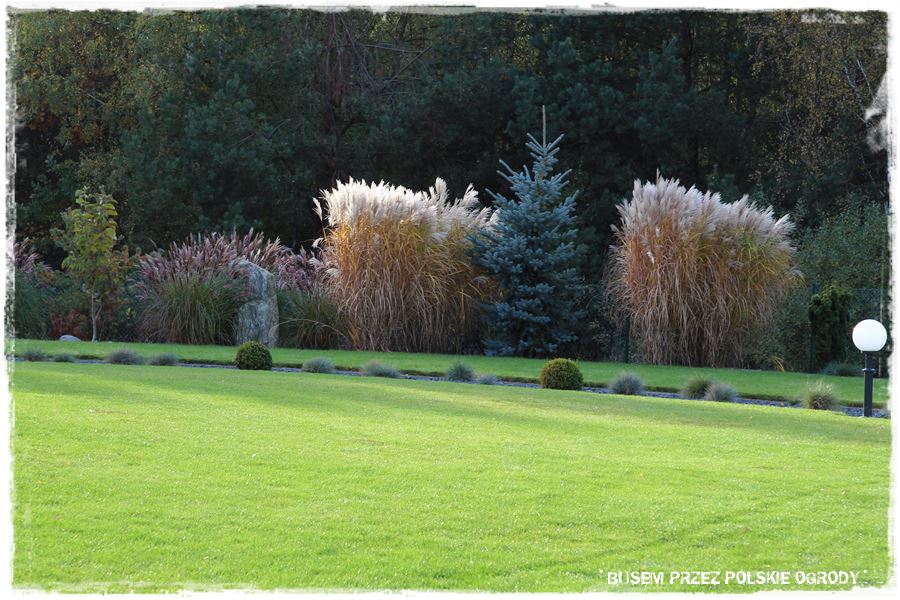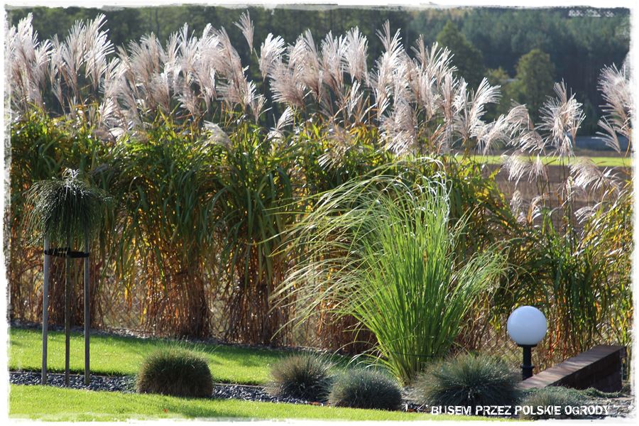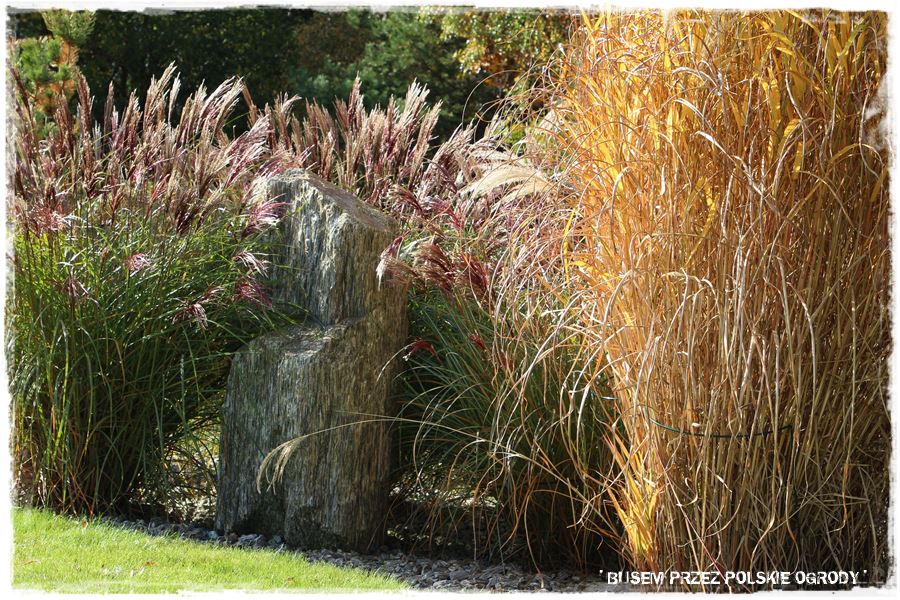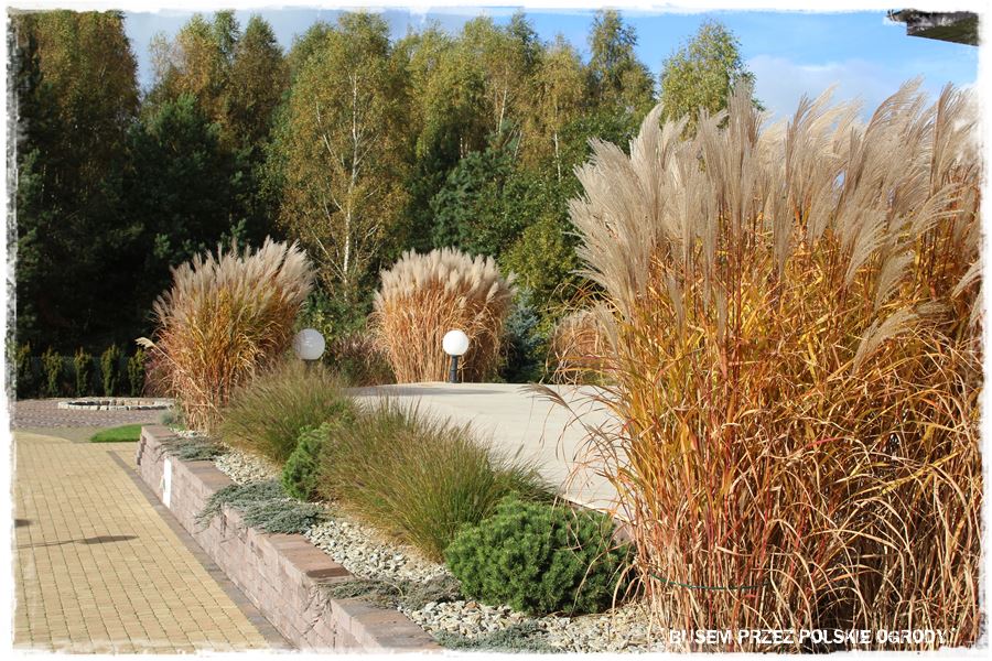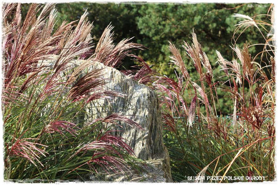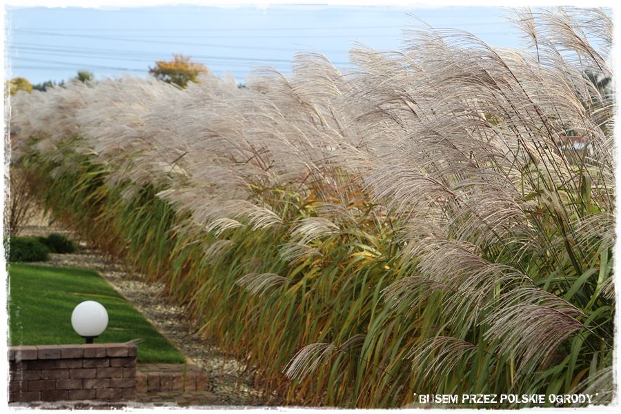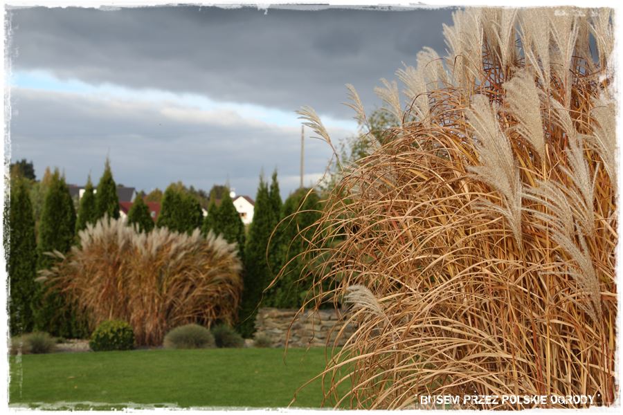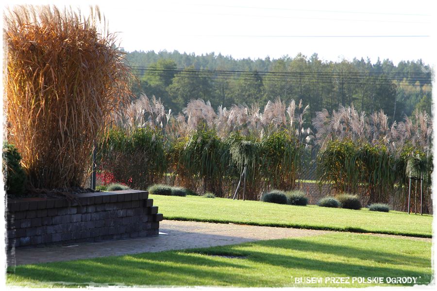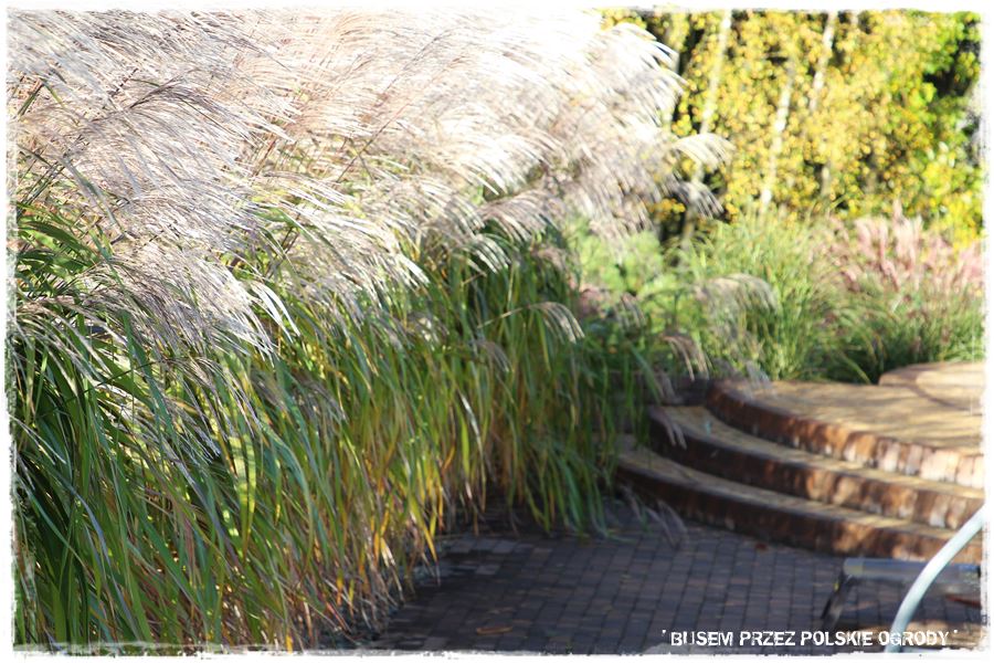 I tym akcentem chciałbym przejść do ostatniego z elementów, wspomnianych na wstępie traw. W ogrodzi występują w przeróżnych odmianach, natomiast na uwagę zasługują wielkie miskanty, w szczególności te w odmianie ‘Memory’, które pięknie szumią i falują na wietrze.