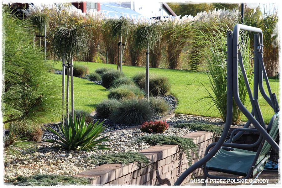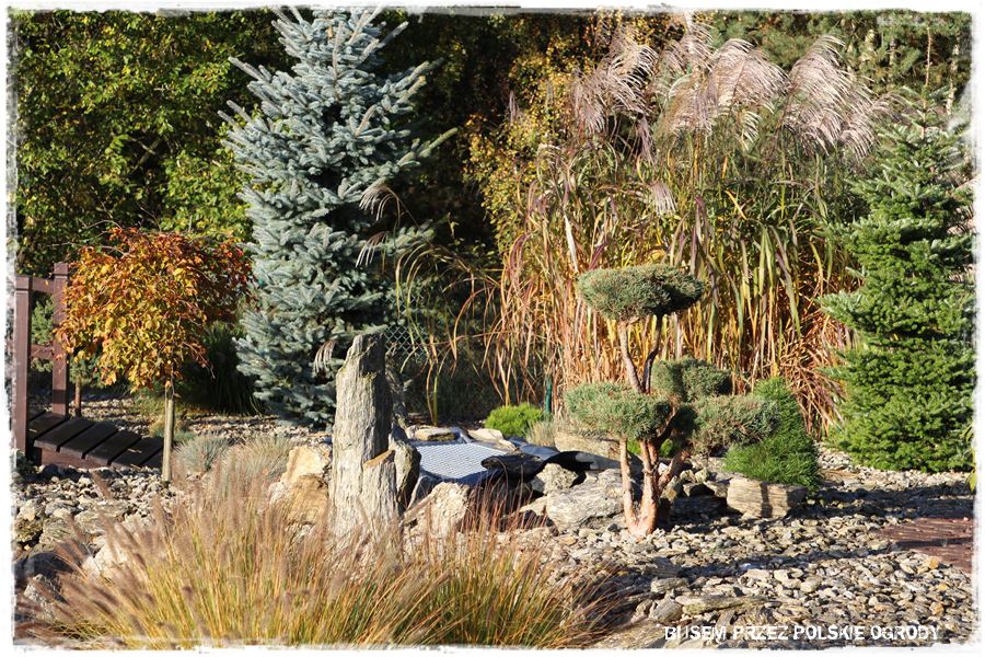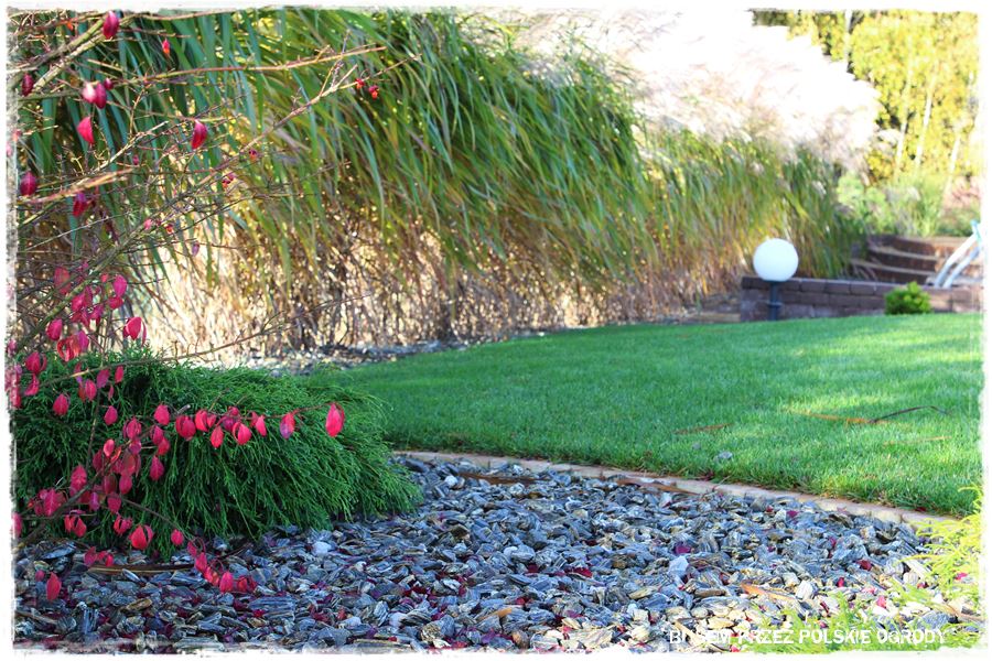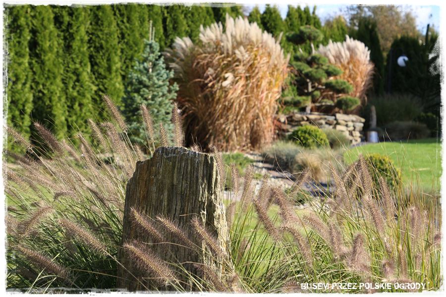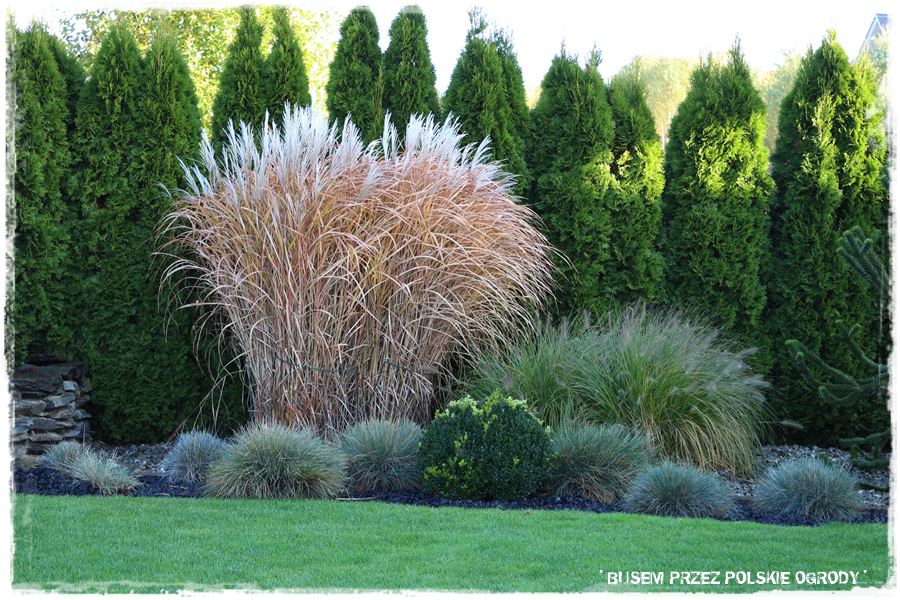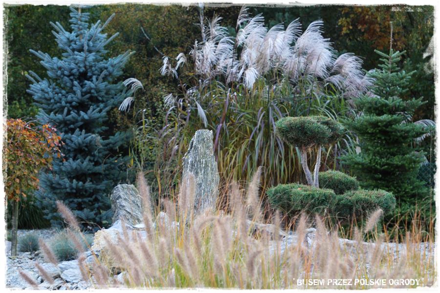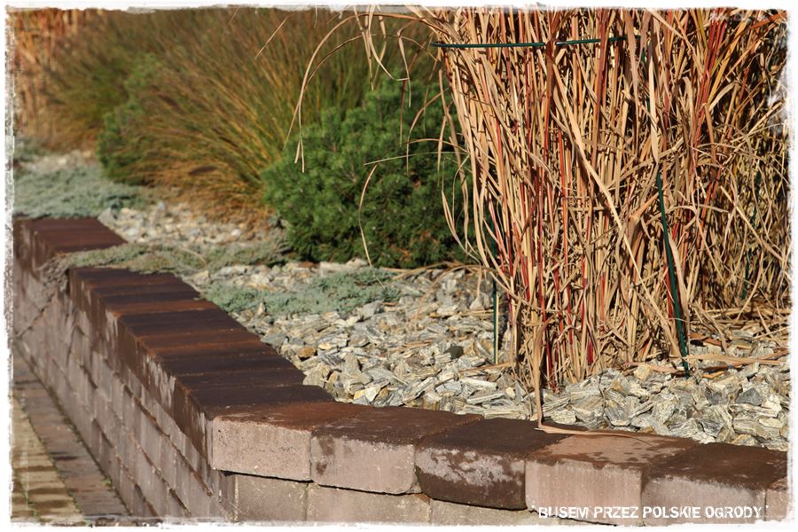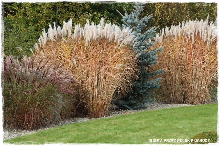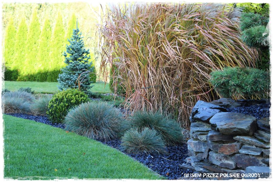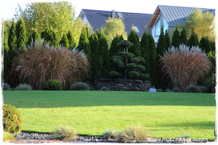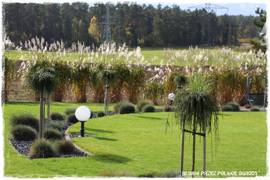 I tym akcentem chciałbym przejść do ostatniego z elementów, wspomnianych na wstępie traw. W ogrodzi występują w przeróżnych odmianach, natomiast na uwagę zasługują wielkie miskanty, w szczególności te w odmianie ‘Memory’, które pięknie szumią i falują na wietrze.
