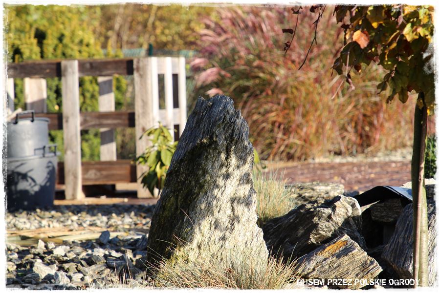 Wracając jeszcze na moment do samego gnejsu to, jak wiesz, kamień który bardzo lubię, który od początku busowej przygody, towarzyszy mi w podróżach. Stąd cieszę się, że w tym ogrodzie spotkałem go w przeróżnej postaci, zarówno w formie mniejszych i większych głazów,