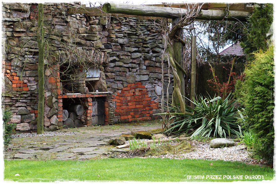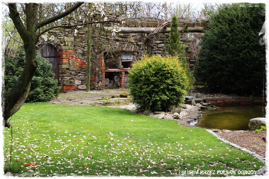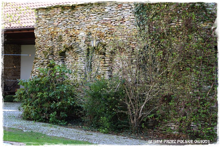 Zresztą kamienno – ceglanych budowli jest w tym ogrodzie więcej, obecne są zarówno w elewacji budynków, ogrodzeniach i różnego rodzaju murkach. Wszędzie zachwycają i imponują oryginalnym wyglądem.