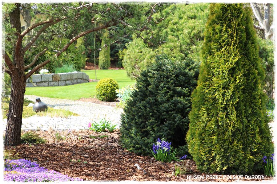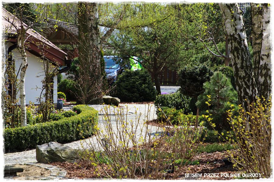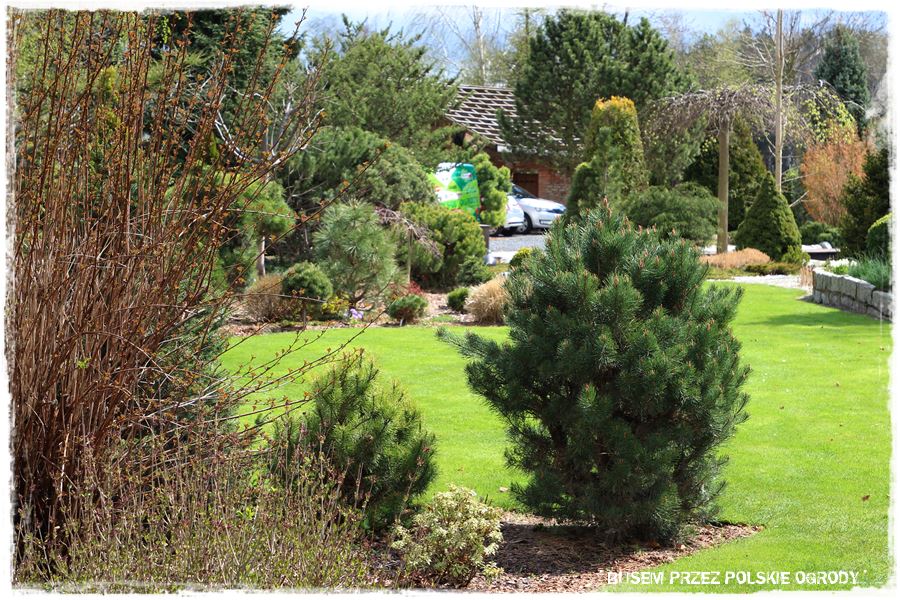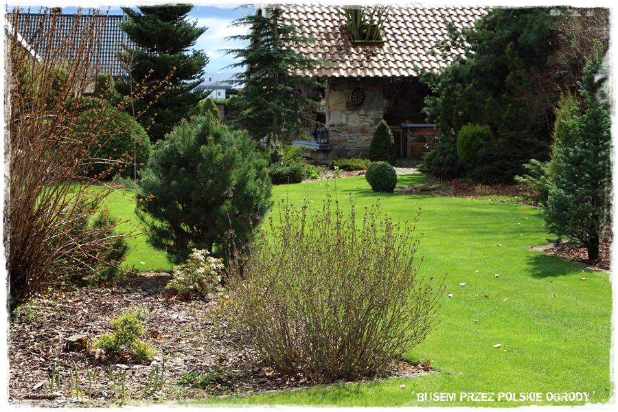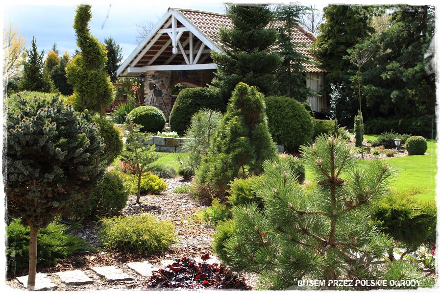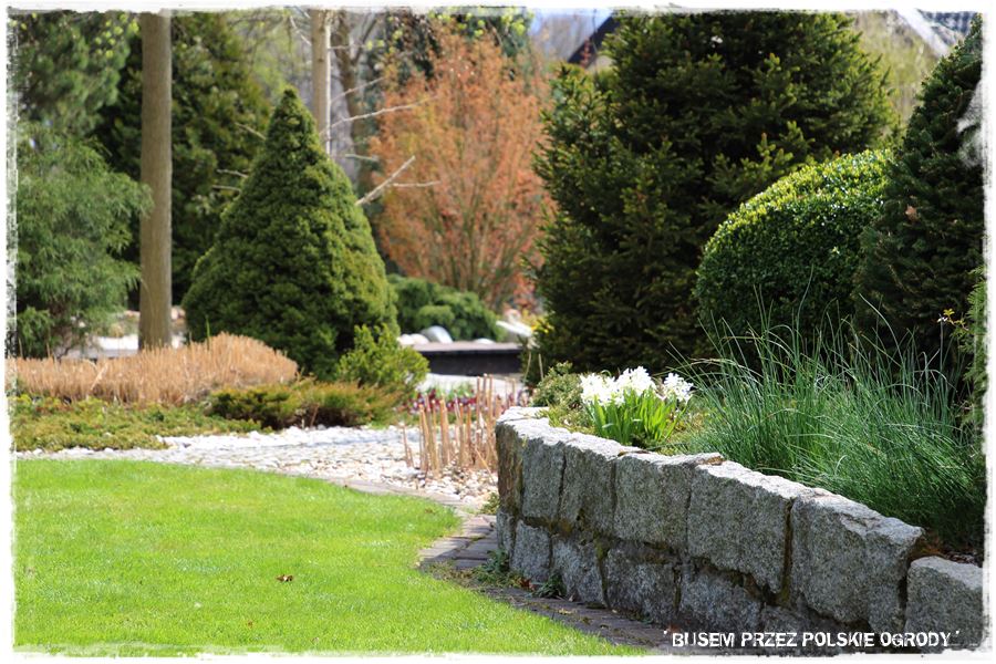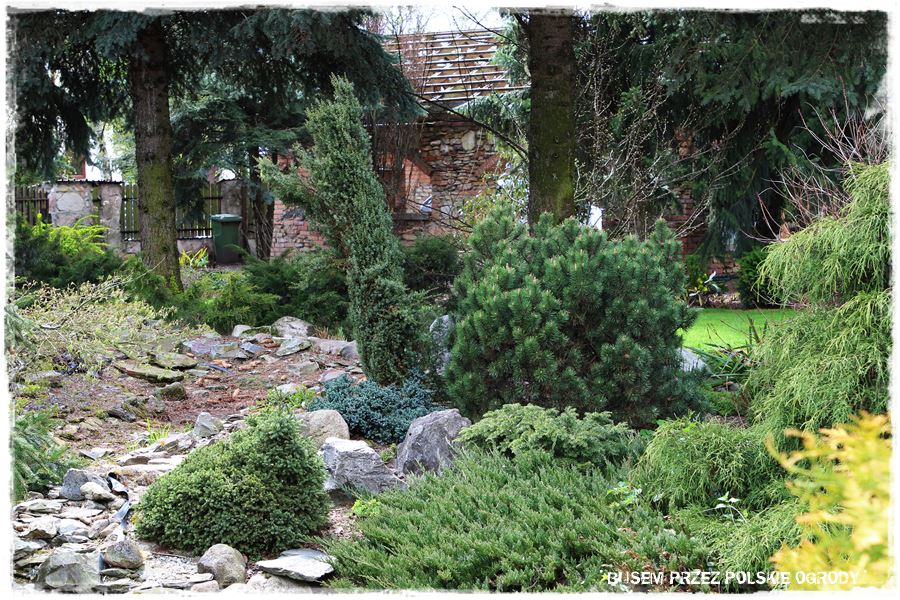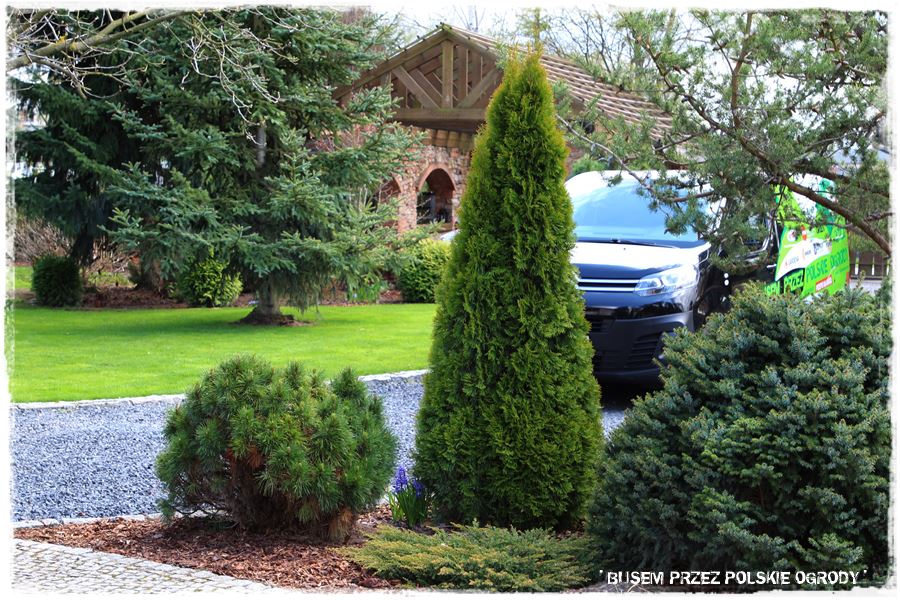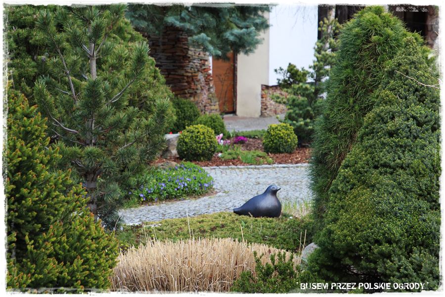 Ogród Oli i Piotra to nie są jednak tylko budowle i trwałe elementy zagospodarowania. To także, a może nawet przede wszystkim rośliny, których są tu niezliczone ilości. To one stanowią szkielet ogrodu i wypełniają wszystkie pokazane elementy. Trzon stanowią rośliny iglaste, dzięki którym ogród cały rok jest ciekawy. Między nie wkomponowane są rośliny liściaste, ale jest to zrobione na tyle umiejętnie, że nawet w okresie bezlistnym (jak właściwie podczas tej wizyty), ogród nie pustoszeje.