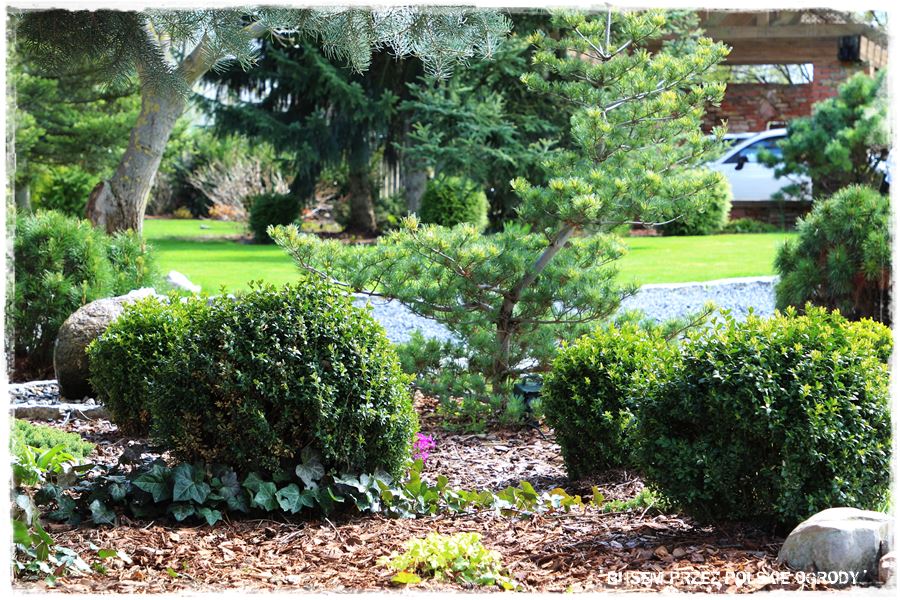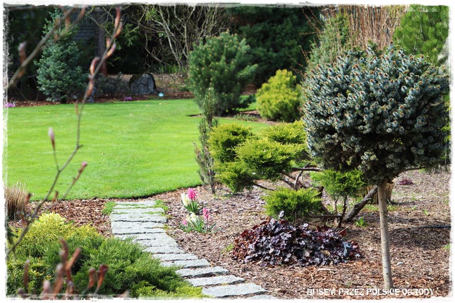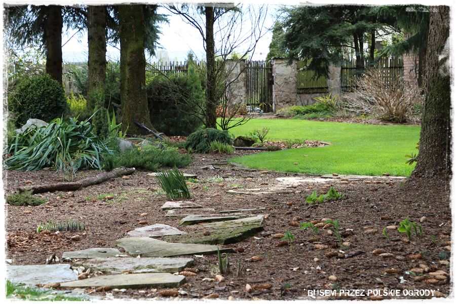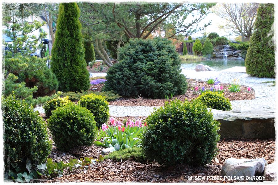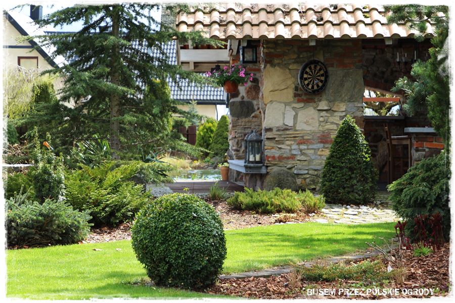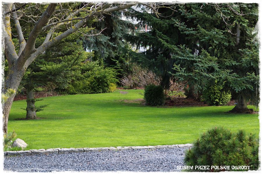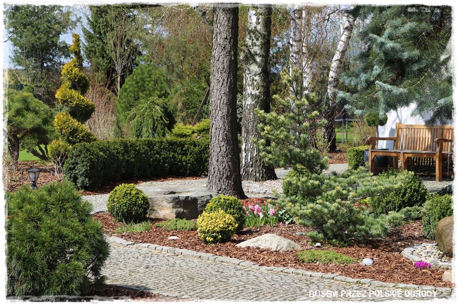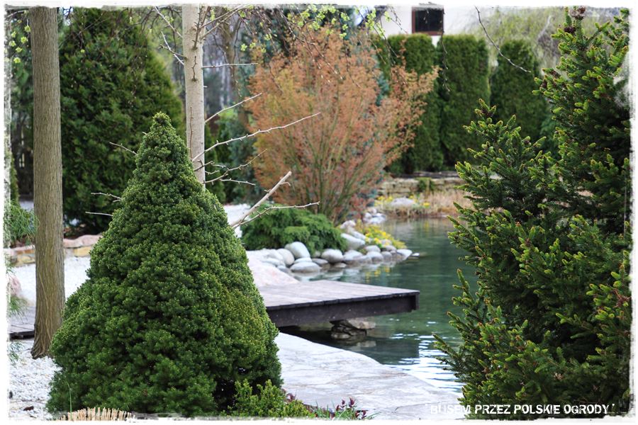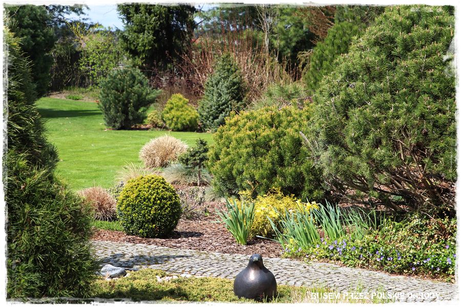Ogród Oli i Piotra to nie są jednak tylko budowle i trwałe elementy zagospodarowania. To także, a może nawet przede wszystkim rośliny, których są tu niezliczone ilości. To one stanowią szkielet ogrodu i wypełniają wszystkie pokazane elementy. Trzon stanowią rośliny iglaste, dzięki którym ogród cały rok jest ciekawy. Między nie wkomponowane są rośliny liściaste, ale jest to zrobione na tyle umiejętnie, że nawet w okresie bezlistnym (jak właściwie podczas tej wizyty), ogród nie pustoszeje.