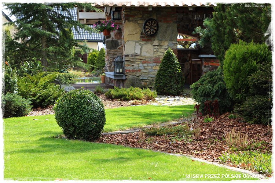 Jednak są pewne elementy, które to wszystko scalają i sprawiają, że mimo wszystko ogród jest spójny i całościowo dobrze skomponowany. Jako rzecz najbardziej rzucającą się w oczy wymieniłbym idealnie zadbane trawniki, których swobodne, duże obszary porozmieszczane są w całym ogrodzie.