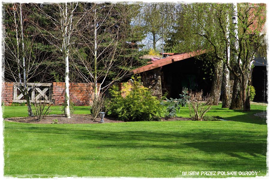 Siódmy odwiedzony ogród położony jest w województwie łódzkim, w niewielkiej miejscowości w pobliżu Piotrkowa Trybunalskiego. Teren, na którym jest urządzony jest stosunkowo duży, ma około 70 arów. A zatem to duża powierzchnia, na której można pozwolić sobie na naprawdę wiele. I tak właśnie jest w tym ogrodzie. Mimo wielu elementów zagospodarowania, widać w nim przestrzeń, w której można czuć się naprawdę komfortowo.