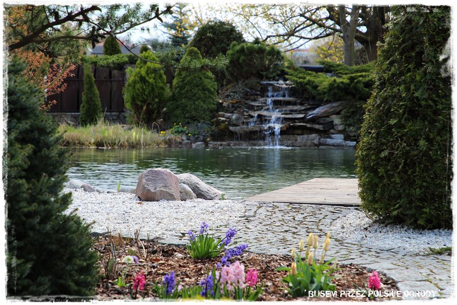 Jednak prawdzie oblicze pokazuje latem, kiedy nabiera kolorów, a wszystko wypełniają i uzupełniają dodatkowo kwitnące rośliny. Spójrz jak to wygląda, chociażby w okolicy stawu.