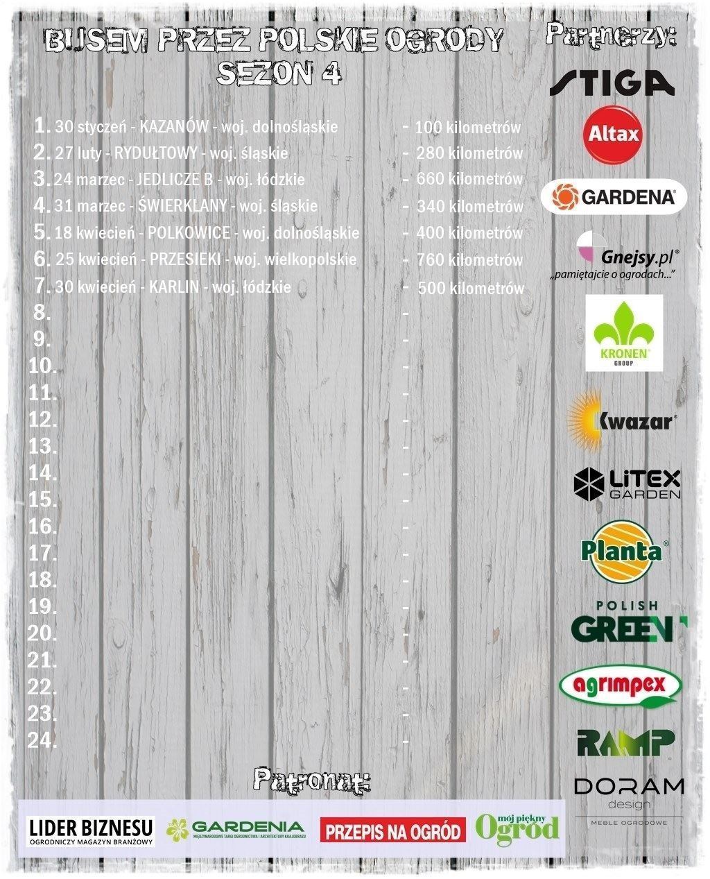 ciemnozielone kropki z numerami od 1 do 24, które obrazują wszystkie ogrody odwiedzone w sezonie 1 – 2018