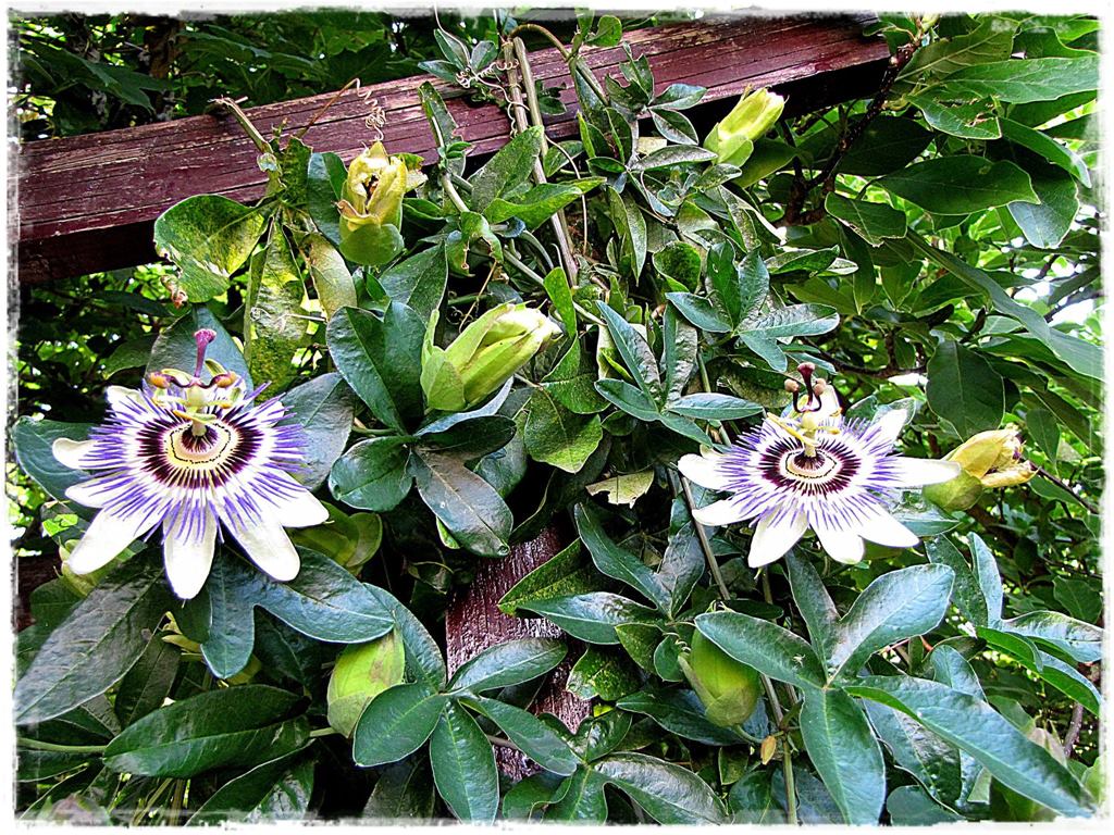 Wchodząc na taras z ogródka był taki nieciekawy kawałek ściany, wiec posadziłam tam passiflorę, która choć jeszcze młodziutka kwitnie nie przerwanie…