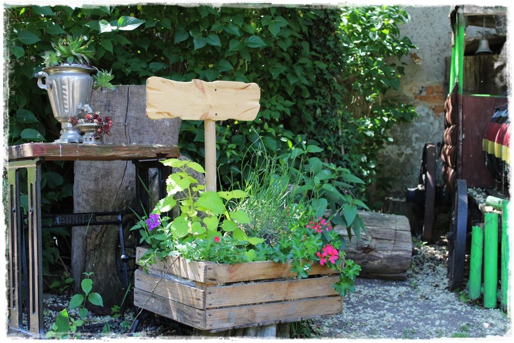 Pod warunkiem jednak, że są pomysłowo wykorzystane i ciekawie wkomponowane. Podróżując po ogrodach, zarówno tych, w których pracuję, jak i tych, które odwiedzam w ramach projektu „Busem przez polskie ogrody”, mam okazję podpatrywać szereg ciekawych rozwiązań i pomysłów. Również tych związanych z tematem, czyli „dekoracje ze skrzynek po owocach”.