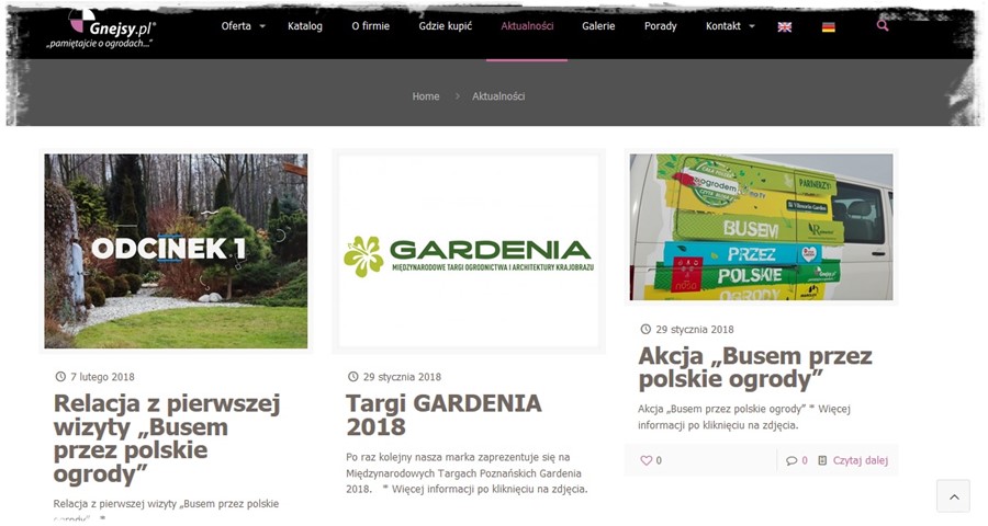 16.02.2018r. – widok na zakładkę “Aktualności” strony firmowej jednego z Partnerów projektu. Fajnie zajmować tam dwa z trzech miejsc najnowszych aktualności.