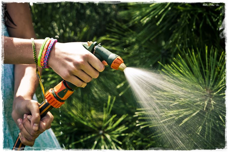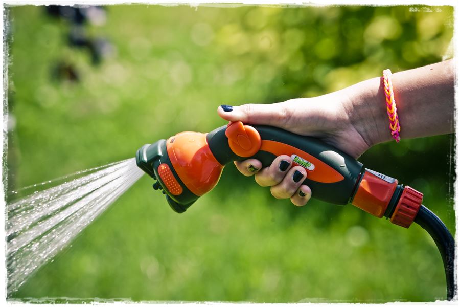 Na wstępie wspomniałem również, że jednym ze sposobów podlewania, jest podlewanie ręczne, bezpośrednio z węża ogrodowego. I oczywiście możesz to robić, jednak nie koniecznie w przypadku trawnika. Bardziej ma to zastosowanie na rabatach ozdobnych czy użytkowych (warzywnikach). Wówczas do dyspozycji masz tzw. pistolety zraszające, które podobnie jak zraszacze, mają określone właściwości. Również różnią się zasięgiem oraz rodzajem strumienia wody jaki mogę generować.