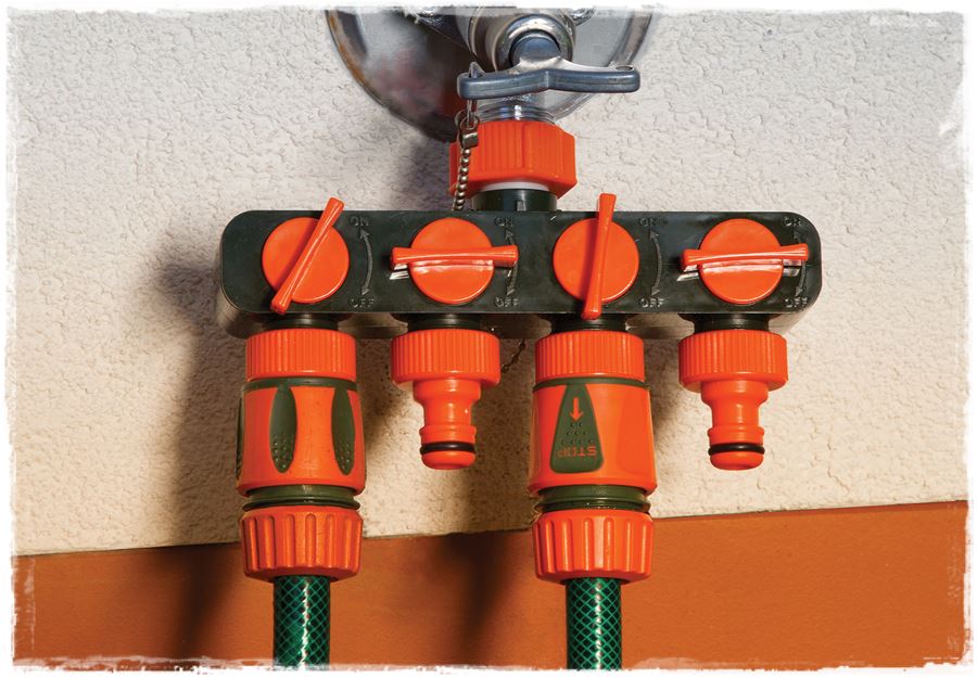 jak również specjalne przyłącze – rozdzielacz z zaworami, umożliwiający jednoczesne podpięcie 4 węży zasilających zraszacze.