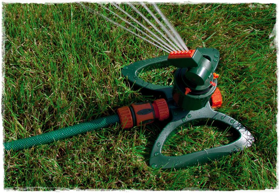Dlatego pozostaje opcja trzecia, czyli przenośne zraszacze ogrodowe. Ich zasada działania jest prosta i sprowadza się jedynie do ustawienia zraszacza w odpowiednim miejscu, ustawienia na nim odpowiedniego strumienia i podpięcia źródła wody. Tak ustawiony zraszacz, w zależności od modelu, podlewa określony obszar trawnika, po czym, po określonym czasie, może być przestawiony w kolejne miejsce. I to cała obsługa.