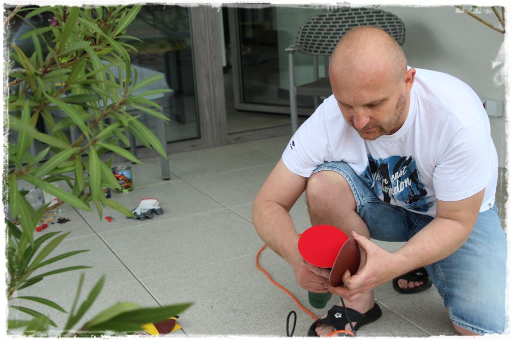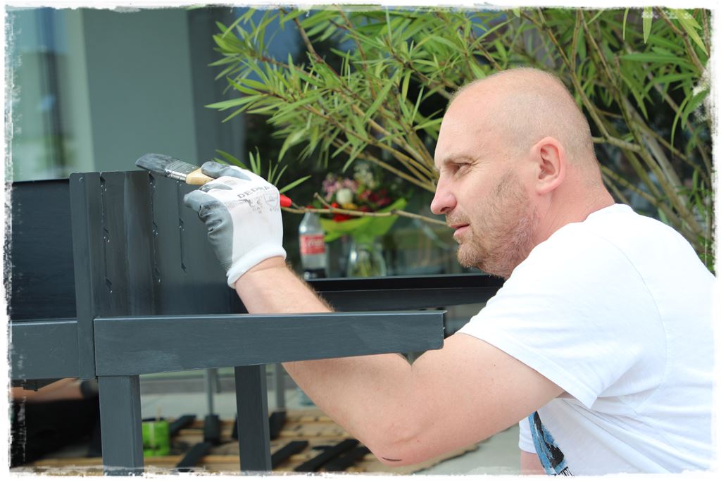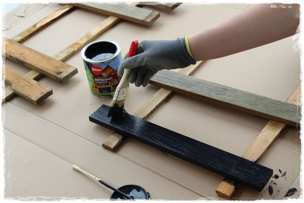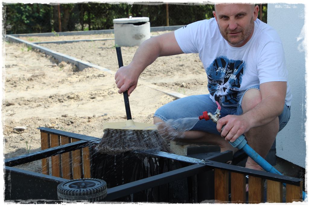 Na szczęście miałem w tym wsparcie pewnego młodego grillowicza, a zatem wszystko również poszło sprawnie, właściwie wg podobnego schematu jak malowanie elementów metalowych. Czyli najpierw dokładne mieszanie impregnatu żywicznego,