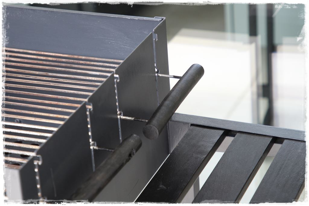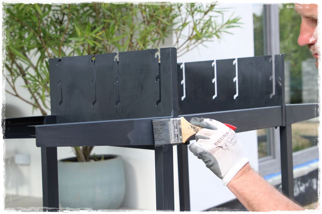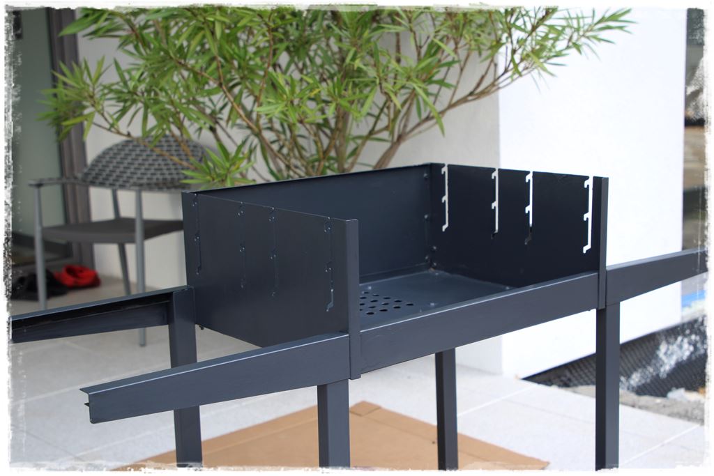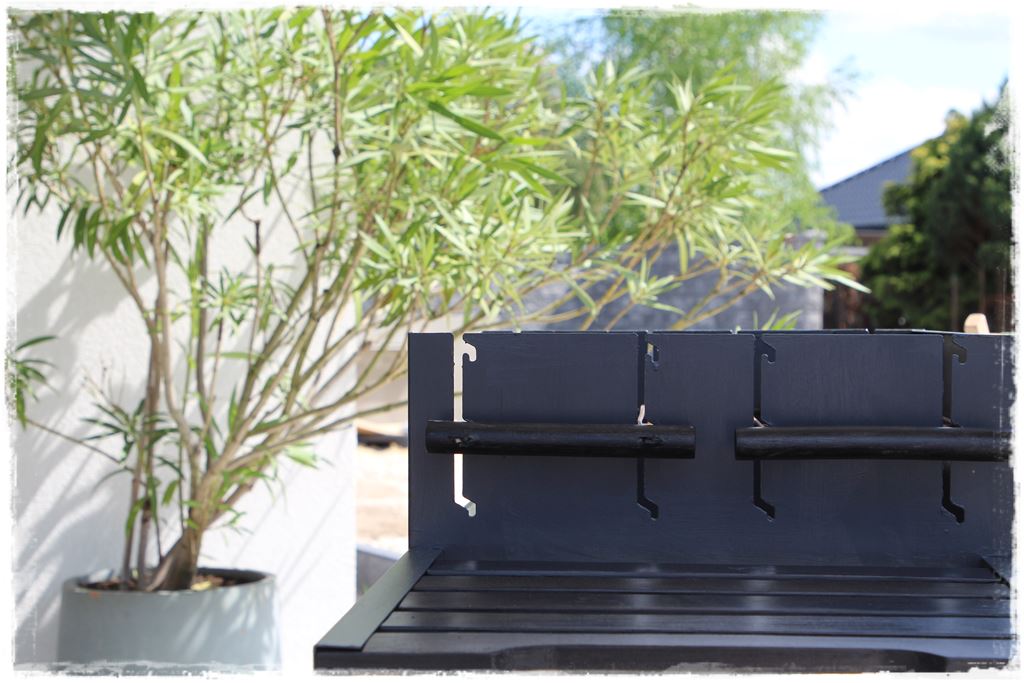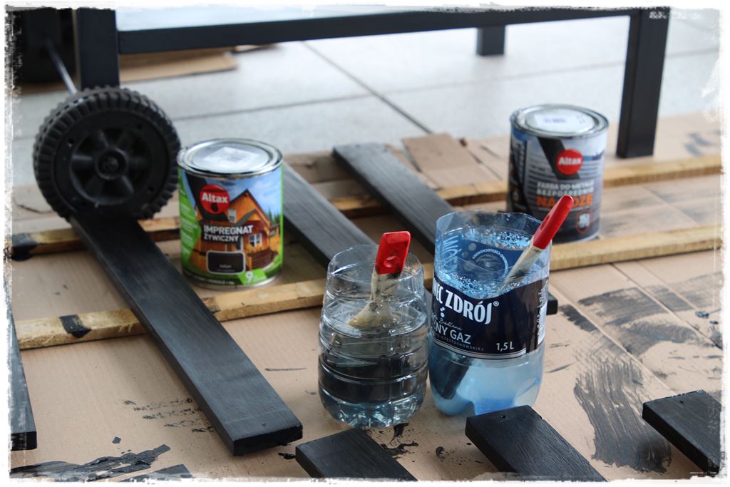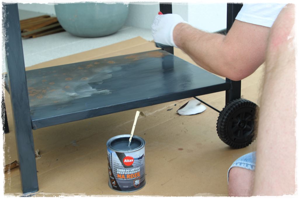 W każdym razie założyłem do niego metalowe ruszta, których nie malowałem farbą, z uwagi że docelowo będzie kładzione tam jedzenie. Podczas pracy pomalowaliśmy im tylko drewniane rączki, co i tak już dodało dużego uroku.