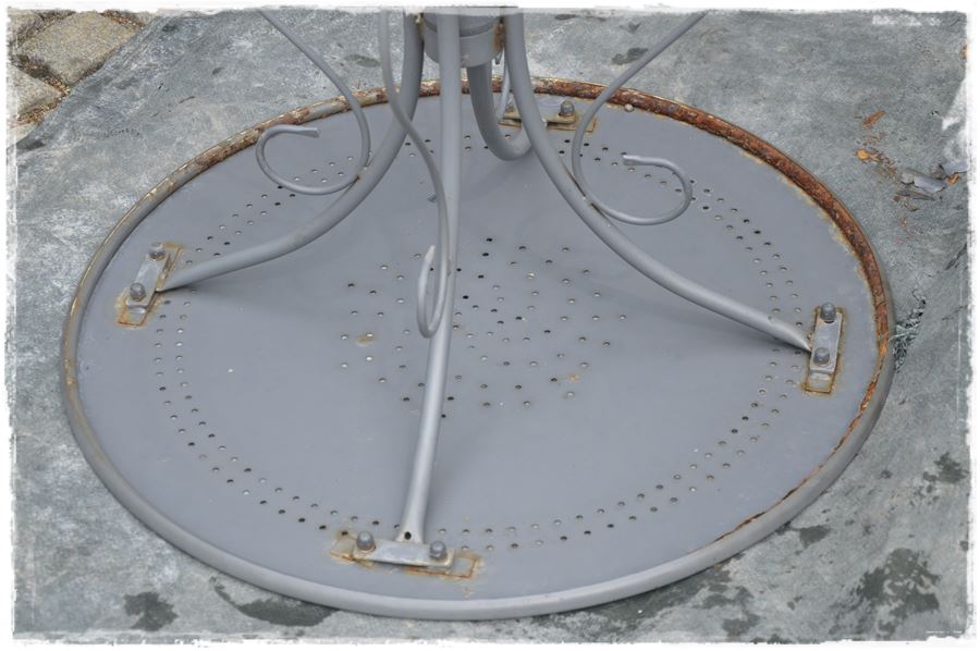 Meble te stoją cały czas w ogrodzie, nie chowam ich nawet zimą. A podczas wiosennego przeglądu zauważyłam, że niestety od spodu farba mocno się łuszczy, a co gorsze, wdarła się również rdza.