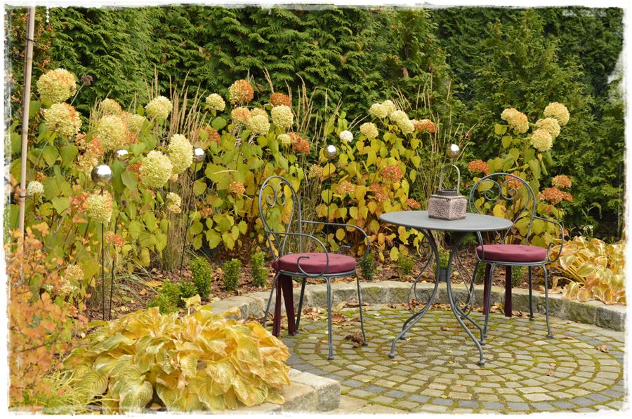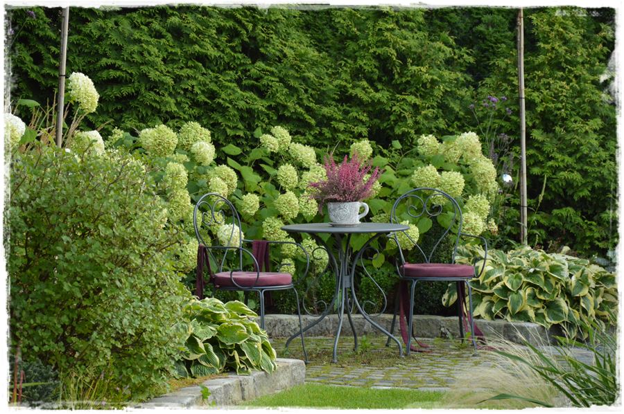 Podsumowując cały temat pt. jak odnowić metalowe meble ogrodowe, mogę powiedzieć, że dzięki tym prostym zabiegom, cały kącik hortensjowy stał się jeszcze bardziej atrakcyjny.