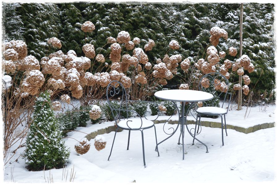 a także zimą, gdy pozostawiam zaschnięte kwiaty na krzewach aż do wczesnej wiosny.