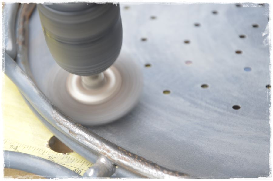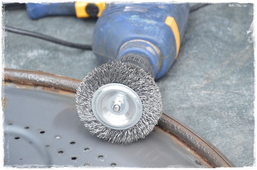- Za pomocą drucianej szczotki lub specjalnej drucianej nakładki na wiertarkę usuń wszelkie, stare, niezwiązane, czyli odchodzące od powierzchni powłoki lakieru oraz rdzę.