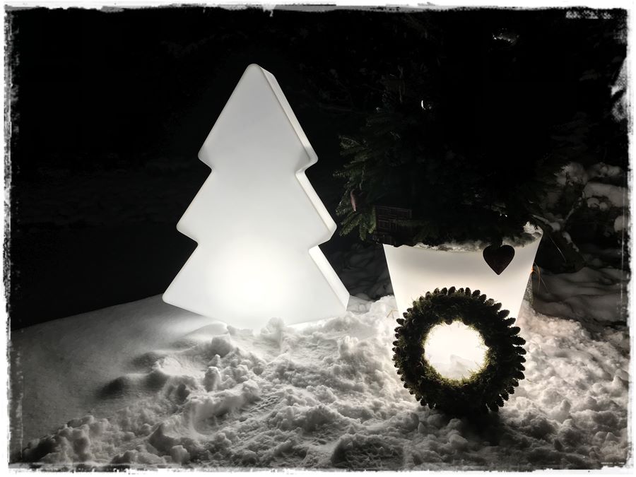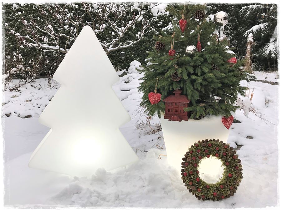 Choinki są mrozoodporne. Myślę, że mogą stanowić piękną dekorację oraz oświetlenie w jednym i to przez całą zimę. Wybierając tego typu dekorację możesz zdecydować się na oświetlenie RGB sterowane pilotem lub bezprzewodowy moduł, który umożliwi umieszczenie lamp w ogrodzie czy na tarasie, bez konieczności podpięcia choinki do zasilania.