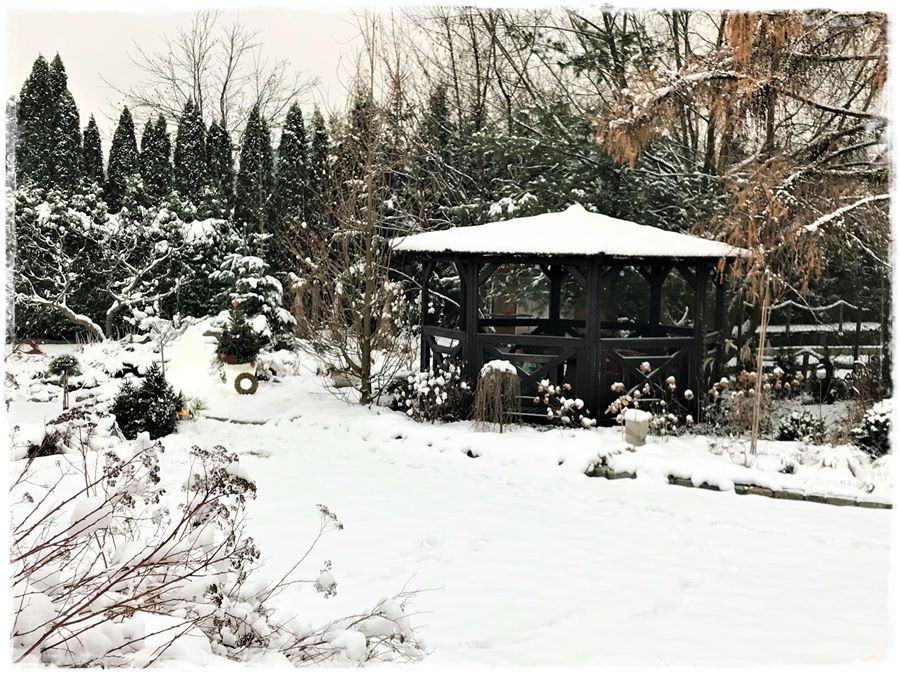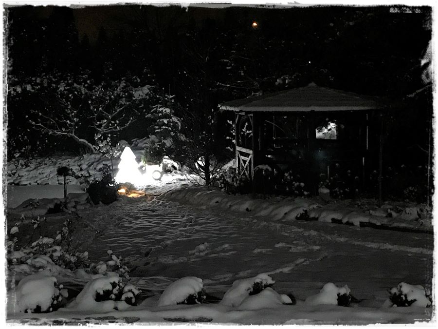 Tegoroczne Święta w moim ogrodzie będą chyba białe, bo śnieg pada nieprzerwanie od kilku dni. I chociaż zimę najbardziej lubię w górach, to nie mogę odmówić uroku ogrodowi pokrytemu śnieżną kołderką. Aby cieszyć się tym bajecznym widokiem również o zmroku, postanowiłam w tym roku podświetlić go w wyjątkowy sposób.