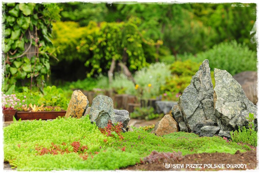 No ale zaraz, zaraz. Jakie tło? Kurtynę, makietę czy co? Jak ktoś lubi, ale nie polecam. Tłem najlepszym, szczególnie dla wszystkich niskich roślin, a także większych obszarów nasadzeń są kamienie. I to w każdym możliwym wydaniu.