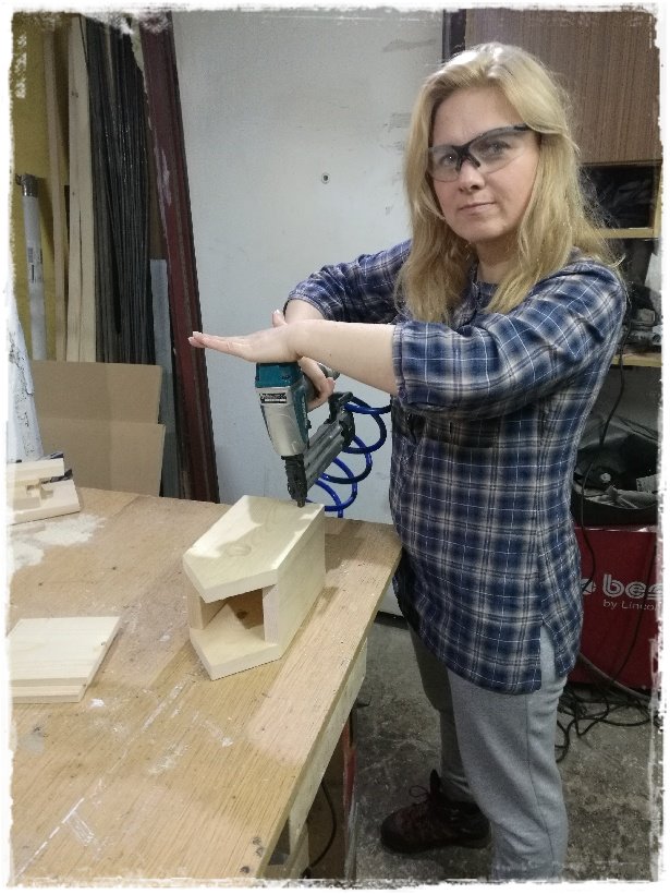 - Połącz ze sobą wszystkie ścianki za pomocą gwoździarki, a jak nią nie dysponujesz, to użyj zwykłego młotka i gwoździków.