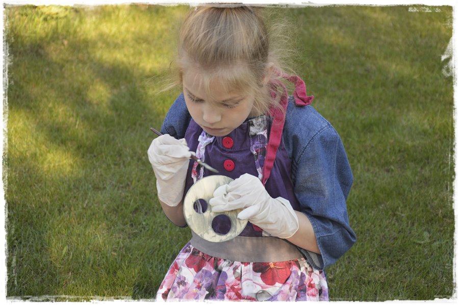 - Załóż dzieciom ochronne fartuszki i rękawiczki silikonowe lub lateksowe (sprawdź wcześniej czy dzieci nie mają na nie uczulenia).