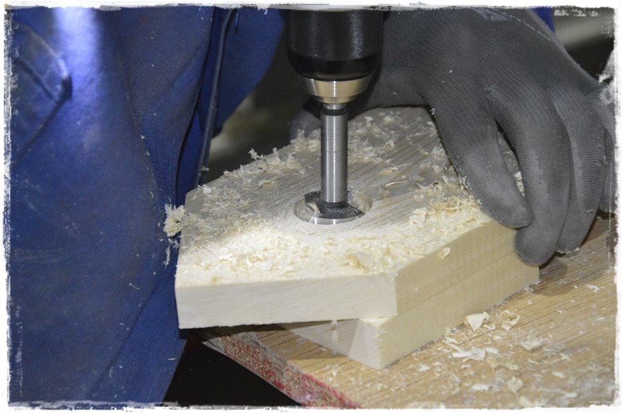 - Do wycięcia okrągłego kominka wlotowego z 3 otworami skorzystaj tak jak ja z pomocy lasera CNC, a jeśli nie masz do niego dostępu, to możesz wykonać ten kominek w formie kwadratu (przytnij go nawet ręcznie), a następnie otwornicą o średnicy 35 mm wykonaj otwór wlotowy.