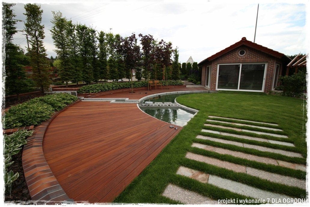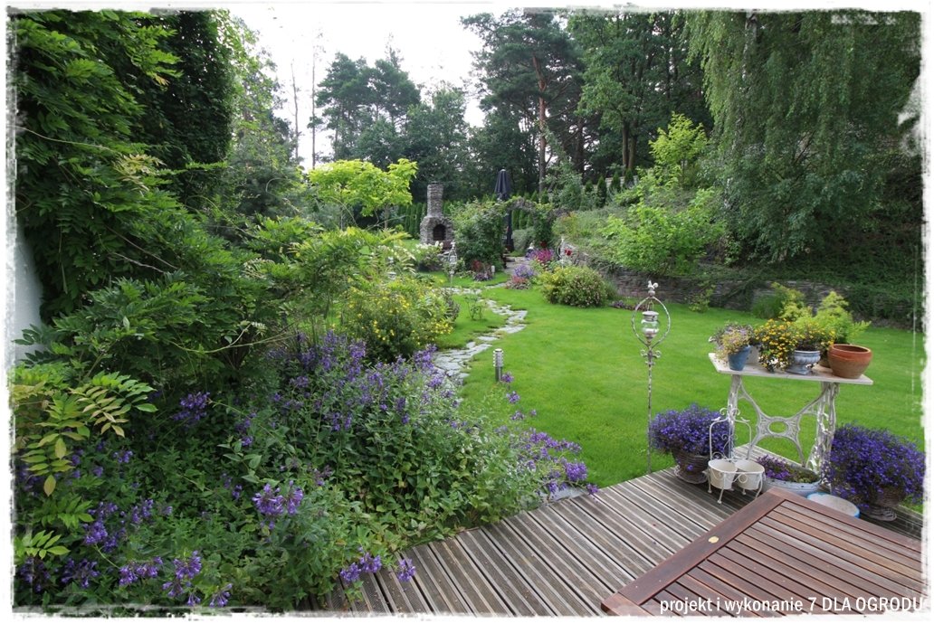 Angielski – to ogród, w którym centralną część stanowią ładne, zadbane trawniki, a wokół otaczają je duże, niezwykle bogate, kolorowe rabaty. Styl angielski, odpowiednio przełożony „na nasz”, to bardzo ciekawa forma aranżacji ogrodu, właśnie takiego o nieregularnych kształtach, jak w pokazanym na wstępie przykładzie nr 4, czyli opartym na nieregularnych kształtach.