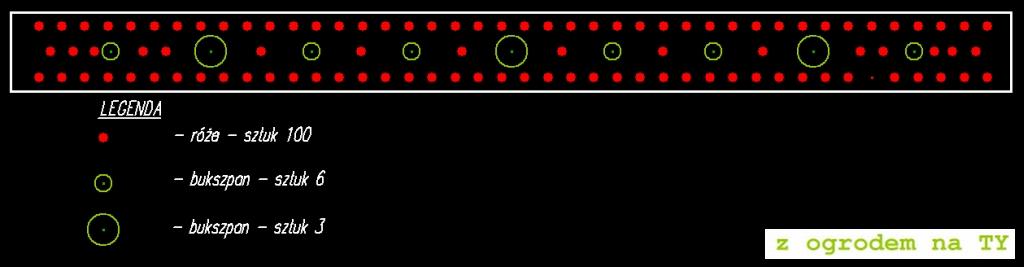 4. Ponieważ Inwestor życzył sobie aby cała rabata wykonana była symetrycznie, należało wykonać mini projekt (szkic roboczy) i rozplanować nasadzenia roślin. Na tym etapie ważne było dokładne rozliczenie odległości poszczególnych roślin, aby były równomiernie rozłożone, a także stanowiły symetryczny układ, czyli odbicie lustrzane względem osi rabaty (zarówno pionowej jak i poziomej).