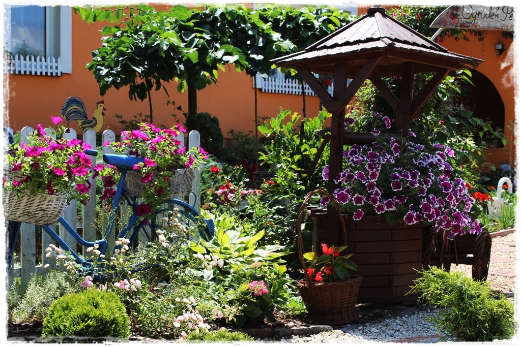 Zanim zainspirujesz się poniższymi przykładami, jedną rzecz musimy wyjaśnić. Otóż rower, mimo że w ogrodzie wygląda ciekawie, to jednak nie do każdego stylu pasuje. Zdecydowanie nie będzie dobrze wyglądał w ogrodach nowoczesnych, w których królują równiutkie jak od linijki rabaty oraz wszechobecny ład i porządek. Z kolei idealnie sprawdzi się w ogrodach naturalnych i wiejskich, w których występuje swobodny układ rabat i nasadzeń. To właśnie w nich będzie oryginalną dekoracją lub nawet kwietnikiem, a nieodłącznym zatem elementem całego zagospodarowania. Spójrz więc na poniższe przykłady, które udało mi się „wynieść” z ogrodów.
