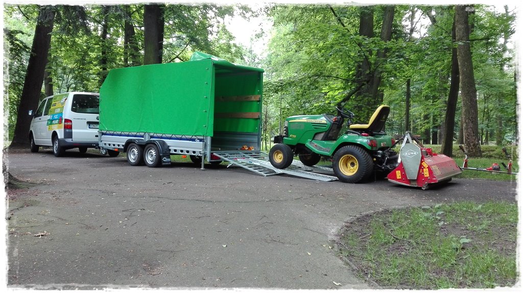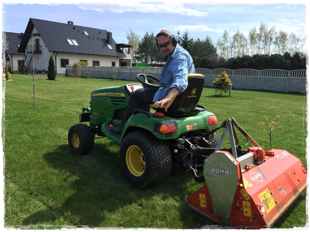 X740 to w pełni profesjonalny traktor komunalny. To co jest najistotniejsze to moc, która wynosi aż 24KM. Pozwala to na koszenie, bez najmniejszego problemu, agregatem o szerokości 137 centymetrów. Kolejna, niezmiernie istotna dla mnie sprawa, to pełna, stalowa rama, która zapewnia trwałość i możliwość pracy w każdych warunkach. Tereny, na których pracuję X740 to nie tylko równe i gładkie polany czy boiska piłkarskie, ale także nierówne, „półdzikie” nawierzchnie porośnięte gęstą trawą. Silnik jest chłodzony cieczą, co sprawdza się przede wszystkim przy ciągłej, wielogodzinnej pracy, szczególnie w okresie letnim. Mój X740 dodatkowo posiada szereg dostawek, m.in. dokładany zbiornik na trawę z tzw. wysokim wysypem, który pozwala mi na koszenie z jednoczesną zbiórką pokosu,