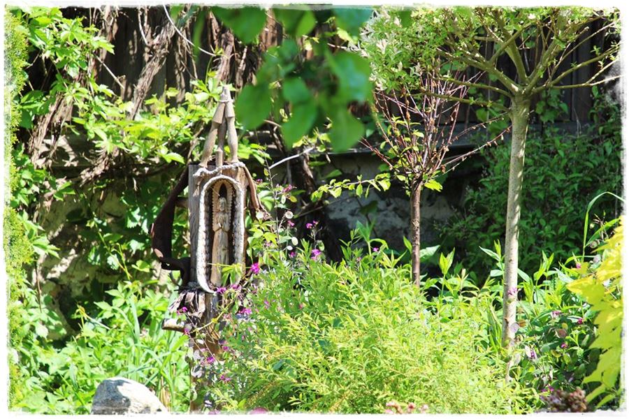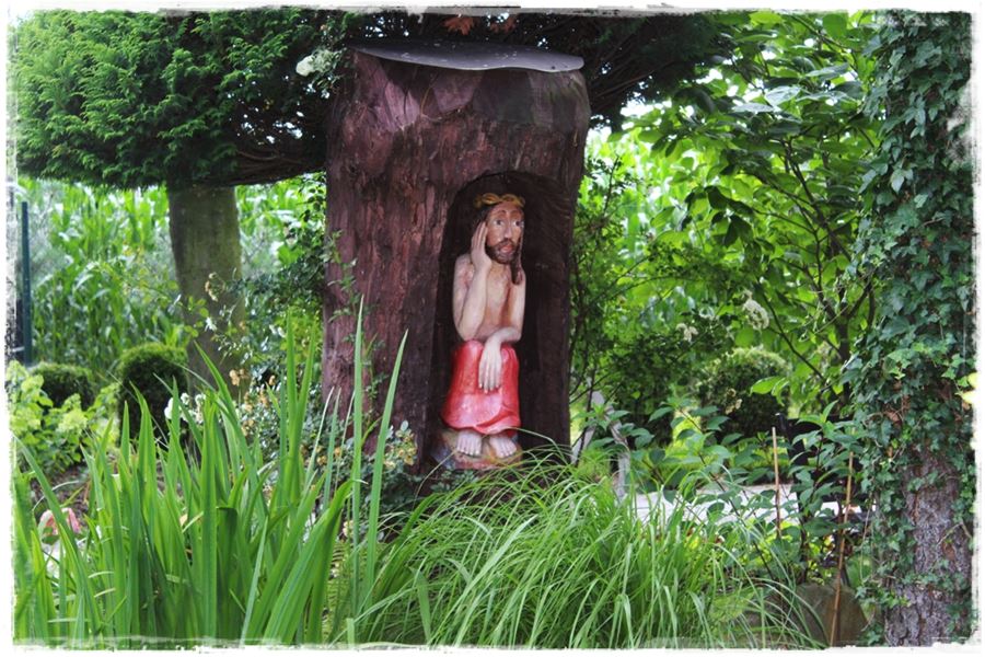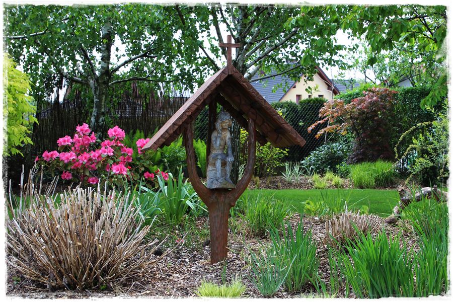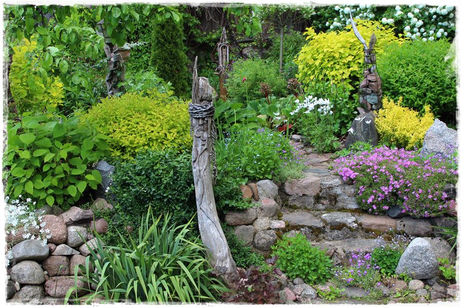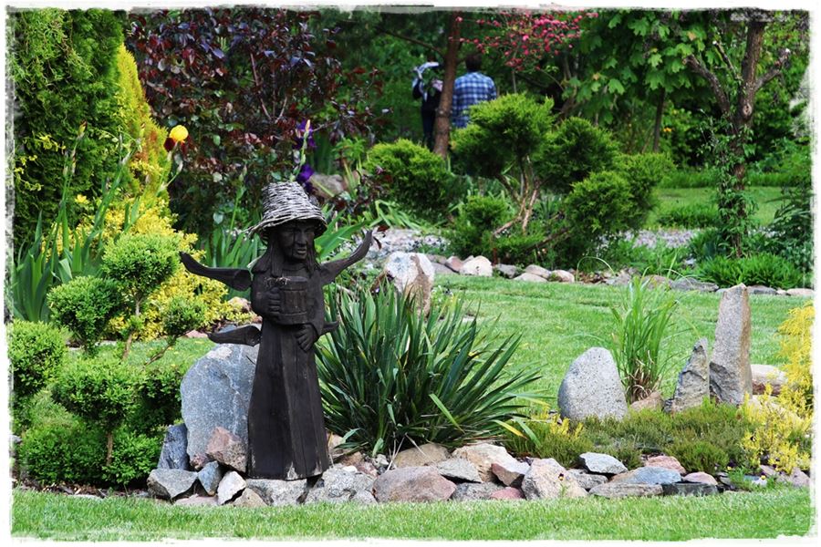 Zanim zainspirujesz się poniższymi przykładami, jedną rzecz musimy wyjaśnić. Otóż rzeźby, mimo że w ogrodzie wyglądają ciekawie, to jednak nie do każdego stylu pasują. Zdecydowanie nie będą dobrze wyglądały w ogrodach nowoczesnych, w których królują równiutkie jak od linijki rabaty oraz wszechobecny ład i porządek. Z kolei idealnie sprawdzą się w ogrodach naturalnych i wiejskich, w których występuje swobodny układ rabat i nasadzeń. To właśnie w nich będą oryginalną dekoracją, a zatem nieodłącznym elementem całego zagospodarowania. Spójrz więc na poniższe przykłady, które udało mi się „wynieść” z ogrodów.