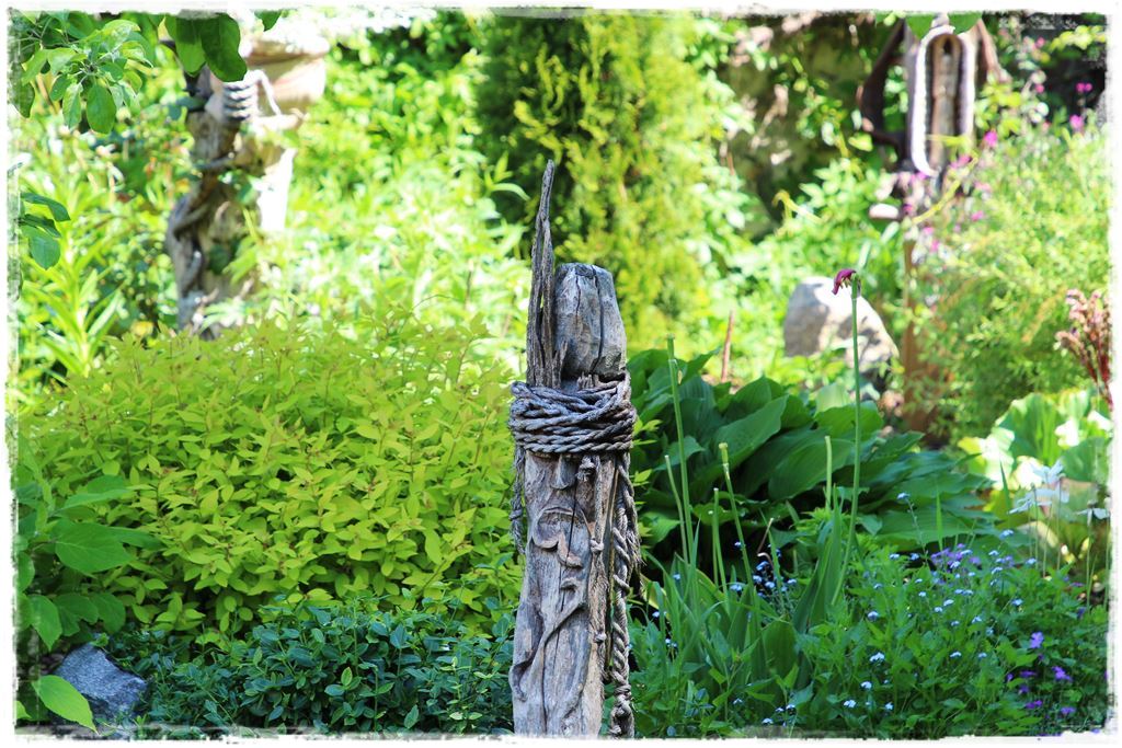 Pod warunkiem jednak, że są pomysłowo wykonane i ciekawie wkomponowane. Podróżując po ogrodach, zarówno tych, w których pracuję, jak i tych, które odwiedzam w ramach projektu „Busem przez polskie ogrody”, mam okazję podpatrywać szereg ciekawych rozwiązań i pomysłów. Również tych związanych z tematem, czyli „jak zaaranżować drewniane rzeźby w ogrodzie?”.