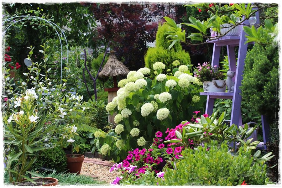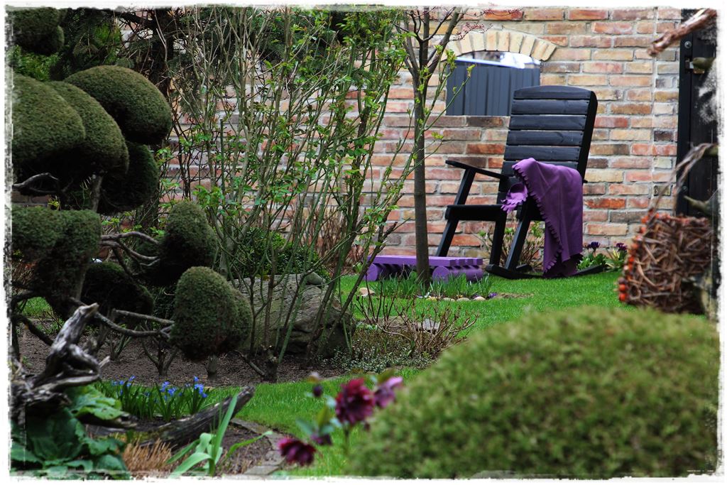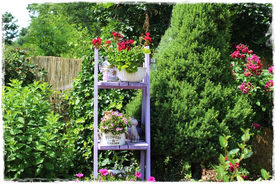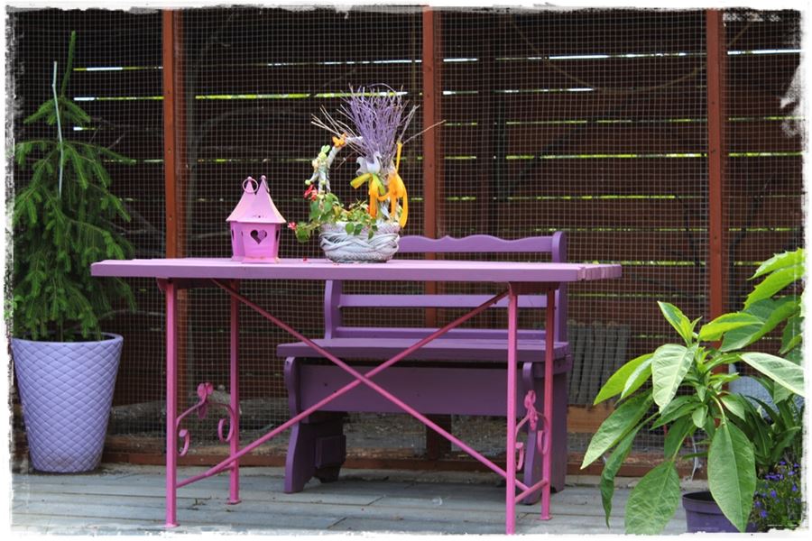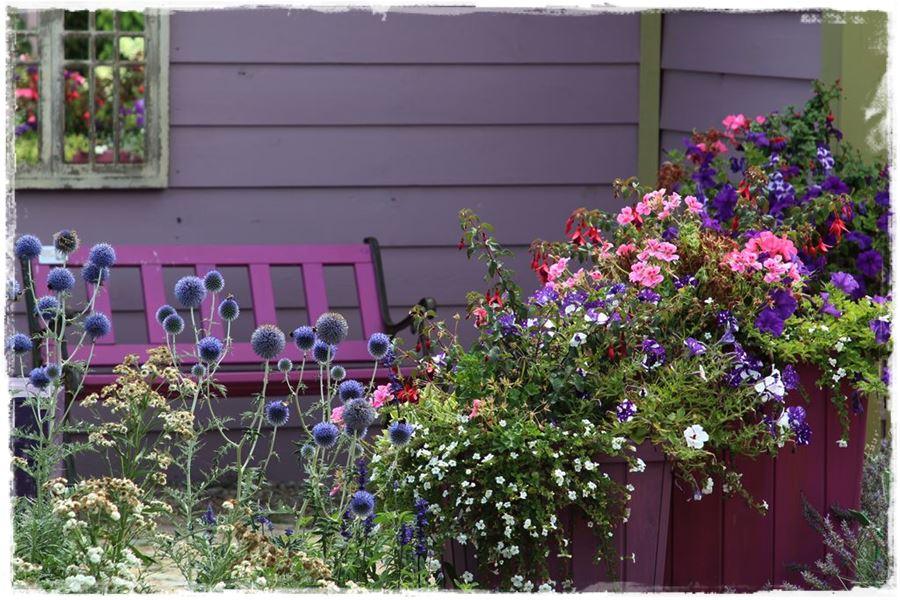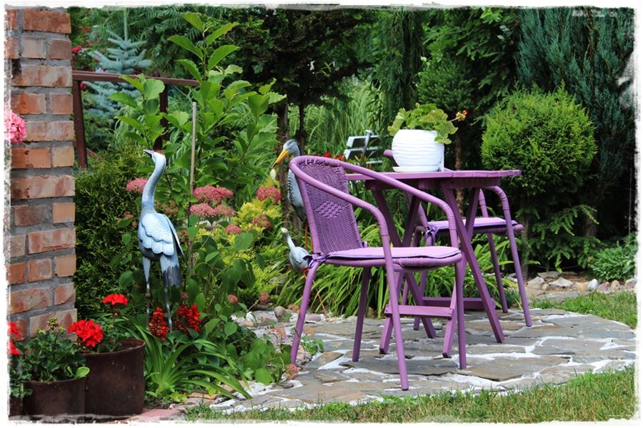 Zarówno jedno, jak i drugie rozwiązanie wygląda dobrze i śmiało można powiedzieć, że efekt fioletowego kącika został uzyskany. Ja osobiście jestem zwolennikiem pierwszego rozwiązania, w którym to fioletowy kącik w ogrodzie powstaje za sprawą poszczególnych elementów i dodatków, które nadają charakter całości. Spójrz na kilka takich kompozycji: